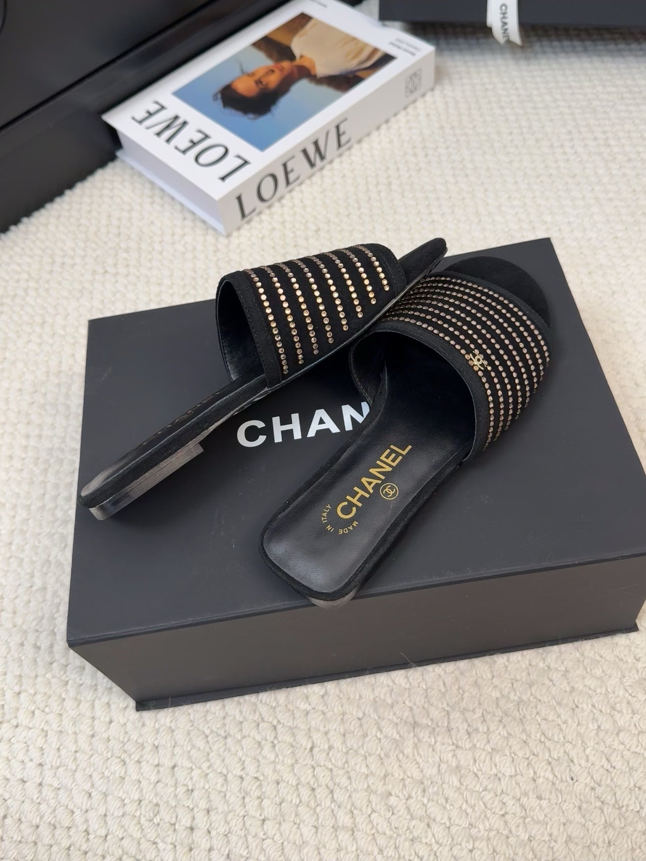 FLAT SLIDE IN BLACK SUEDE WITH CRYSTALS