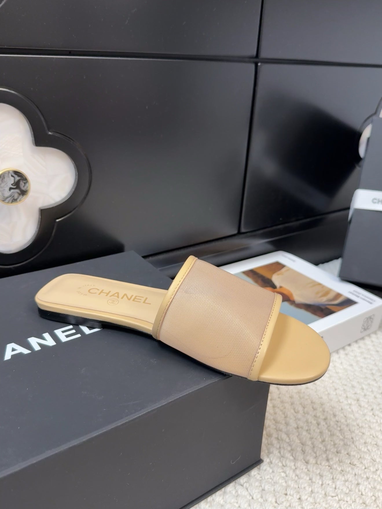 FLAT SLIDE IN FLAX YELLOW MESH AND SUEDE