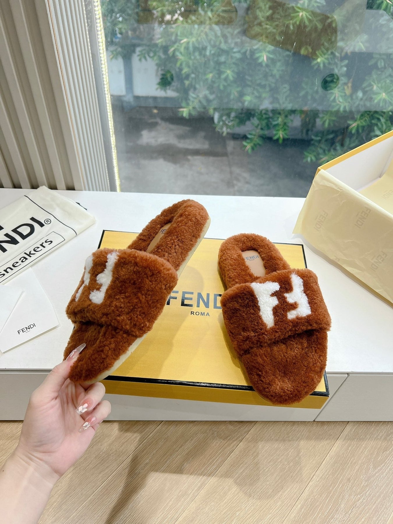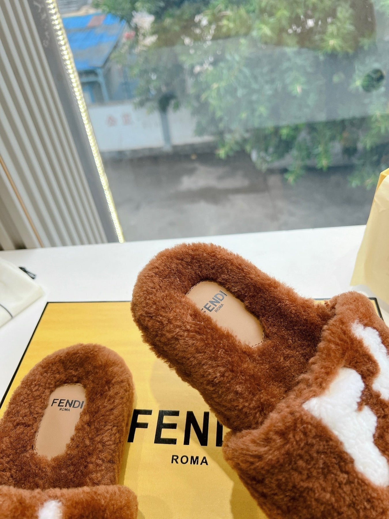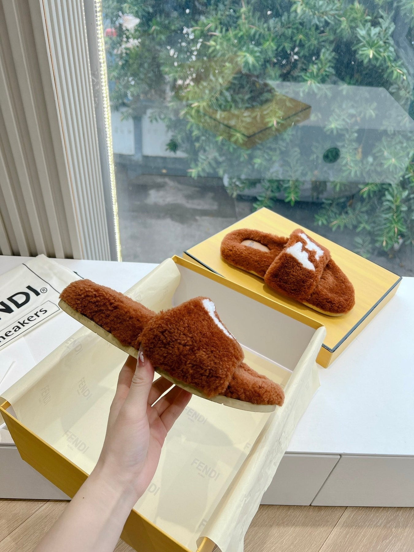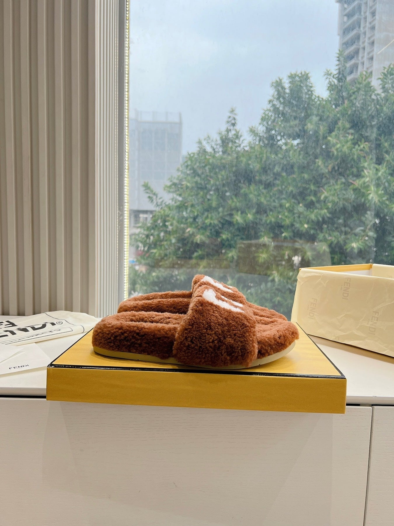 FLAT SLIDE IN GINGERBREAD BROWN FLEECE WITH WHITE LOGO