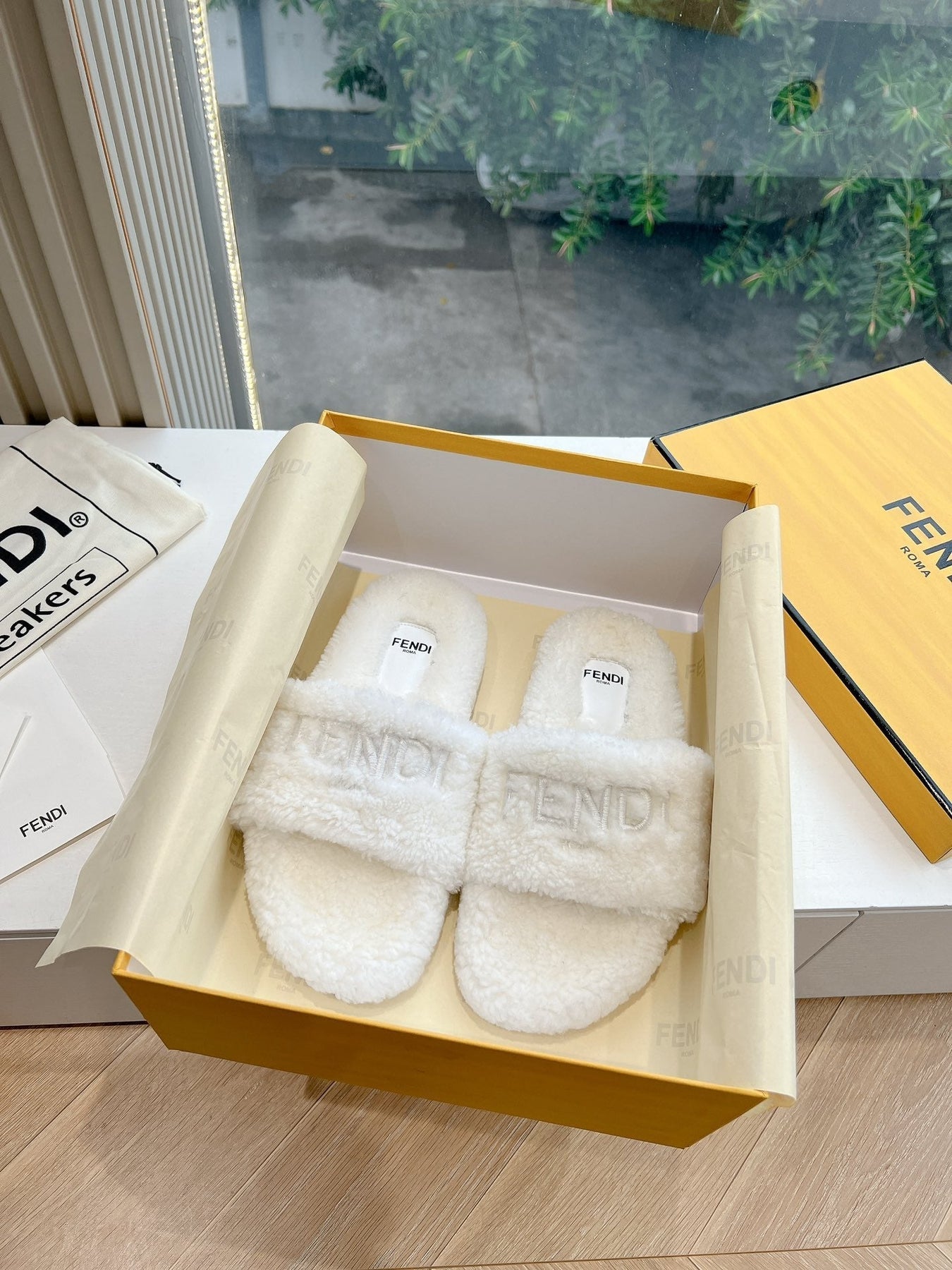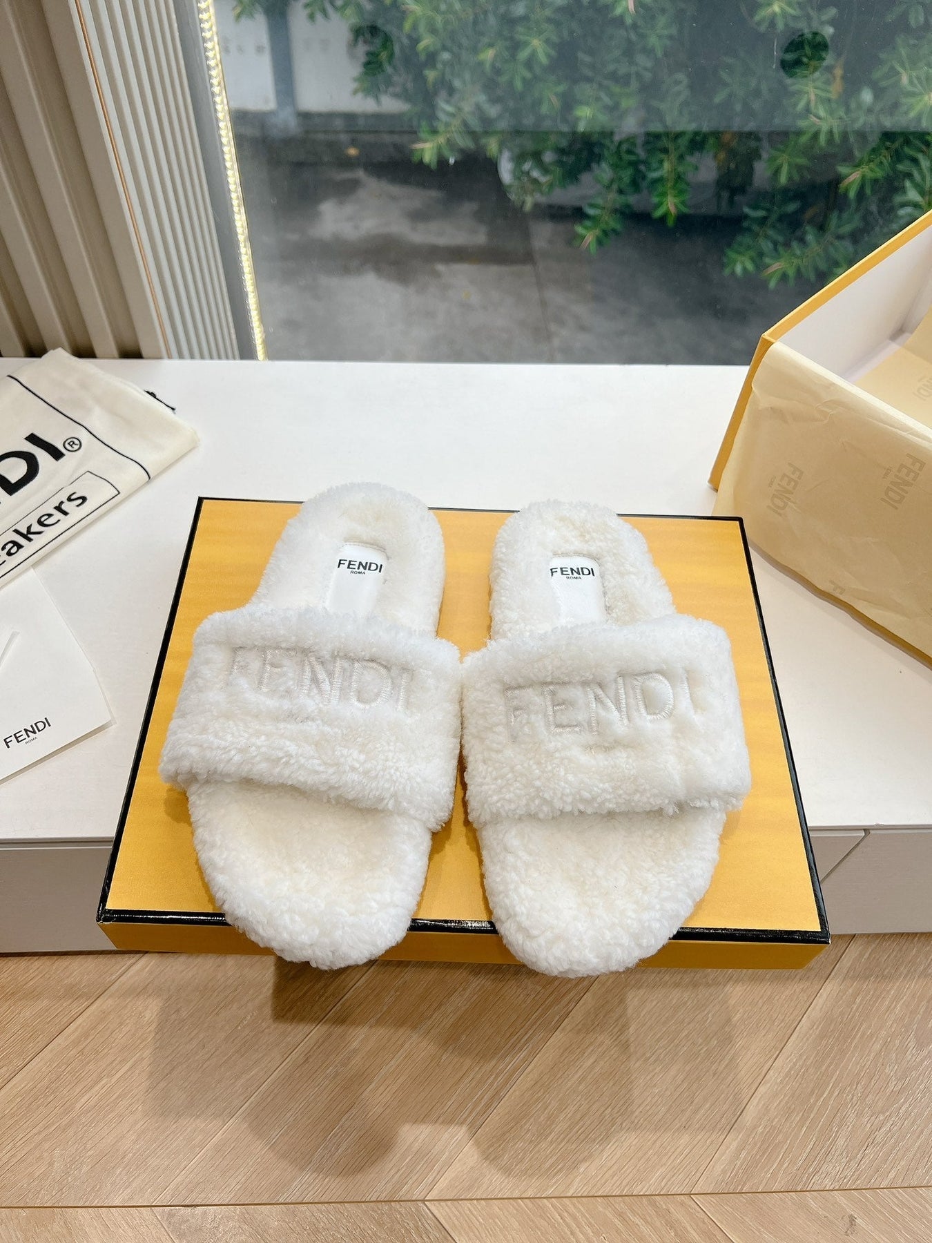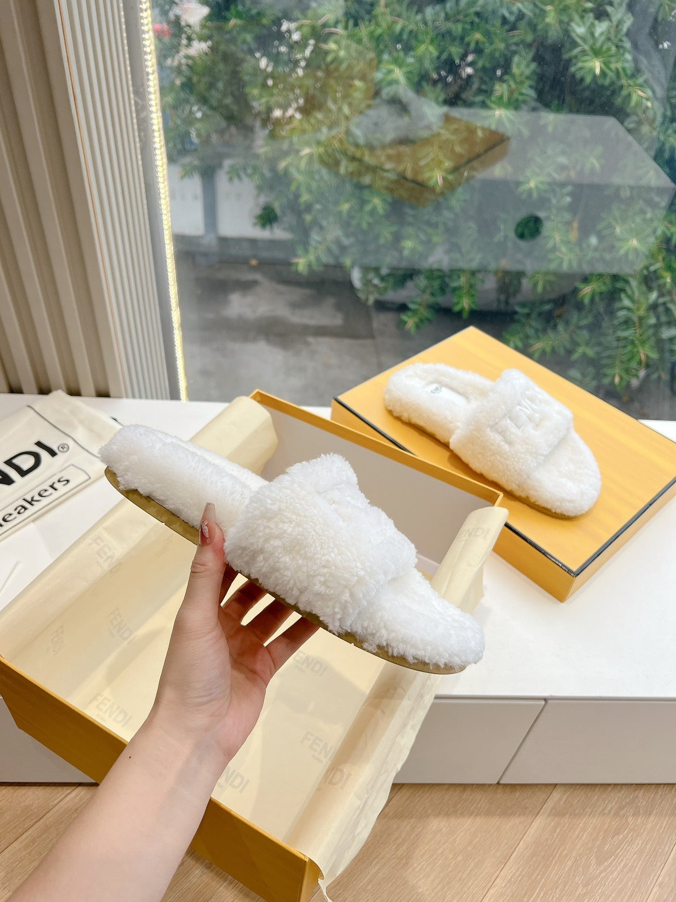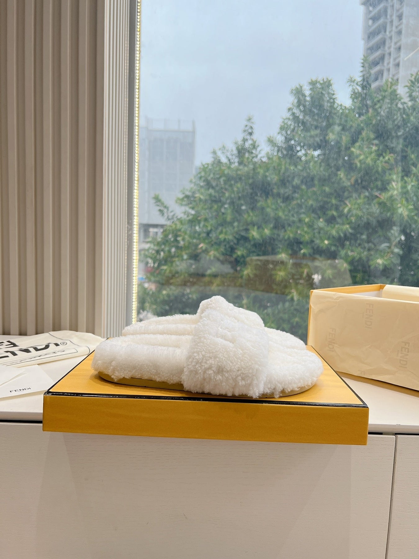 FLAT SLIDE IN WHITE FLEECE