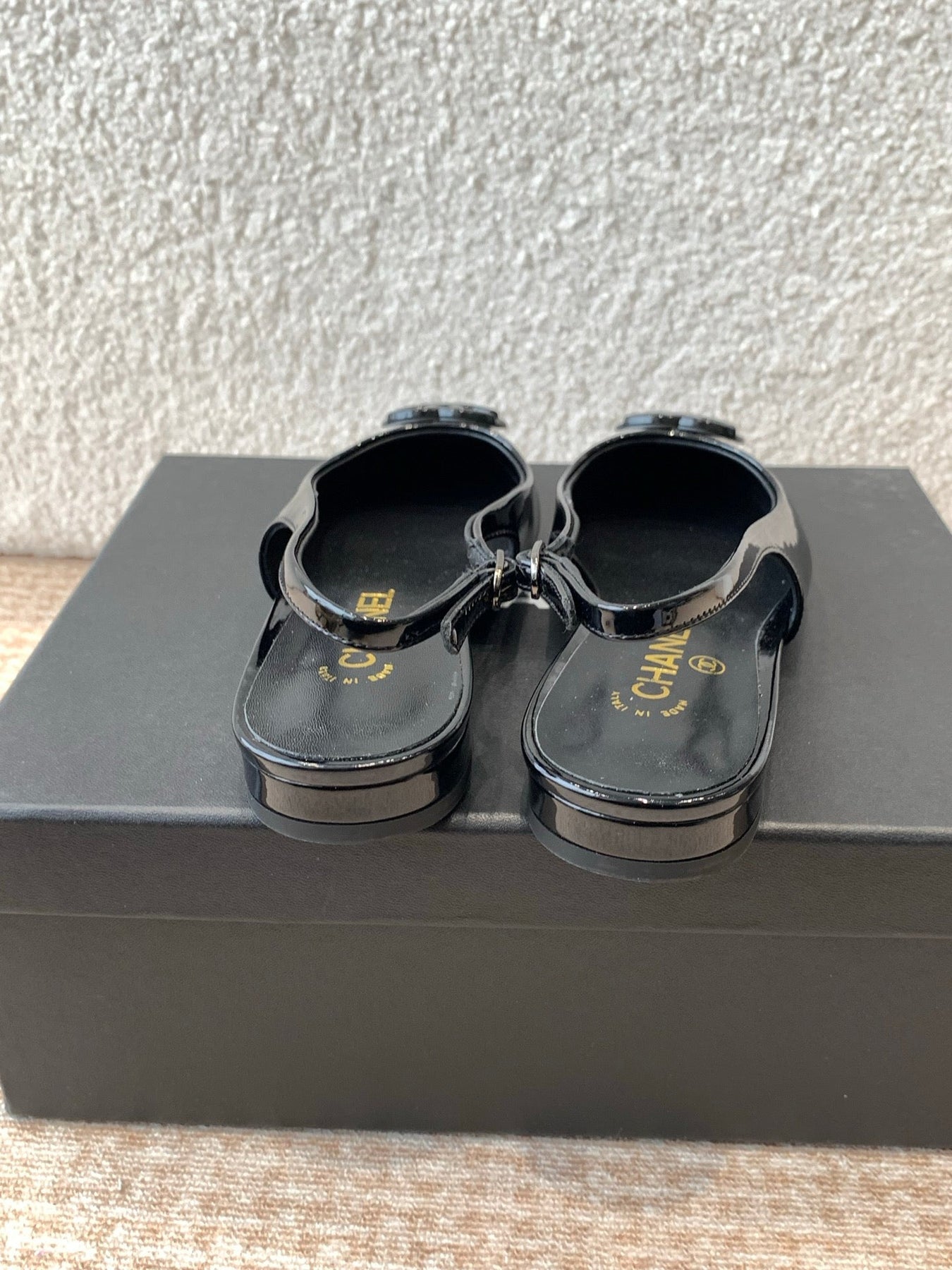 FLAT SLINGBACKS IN BLACK PATENT CALFSKIN