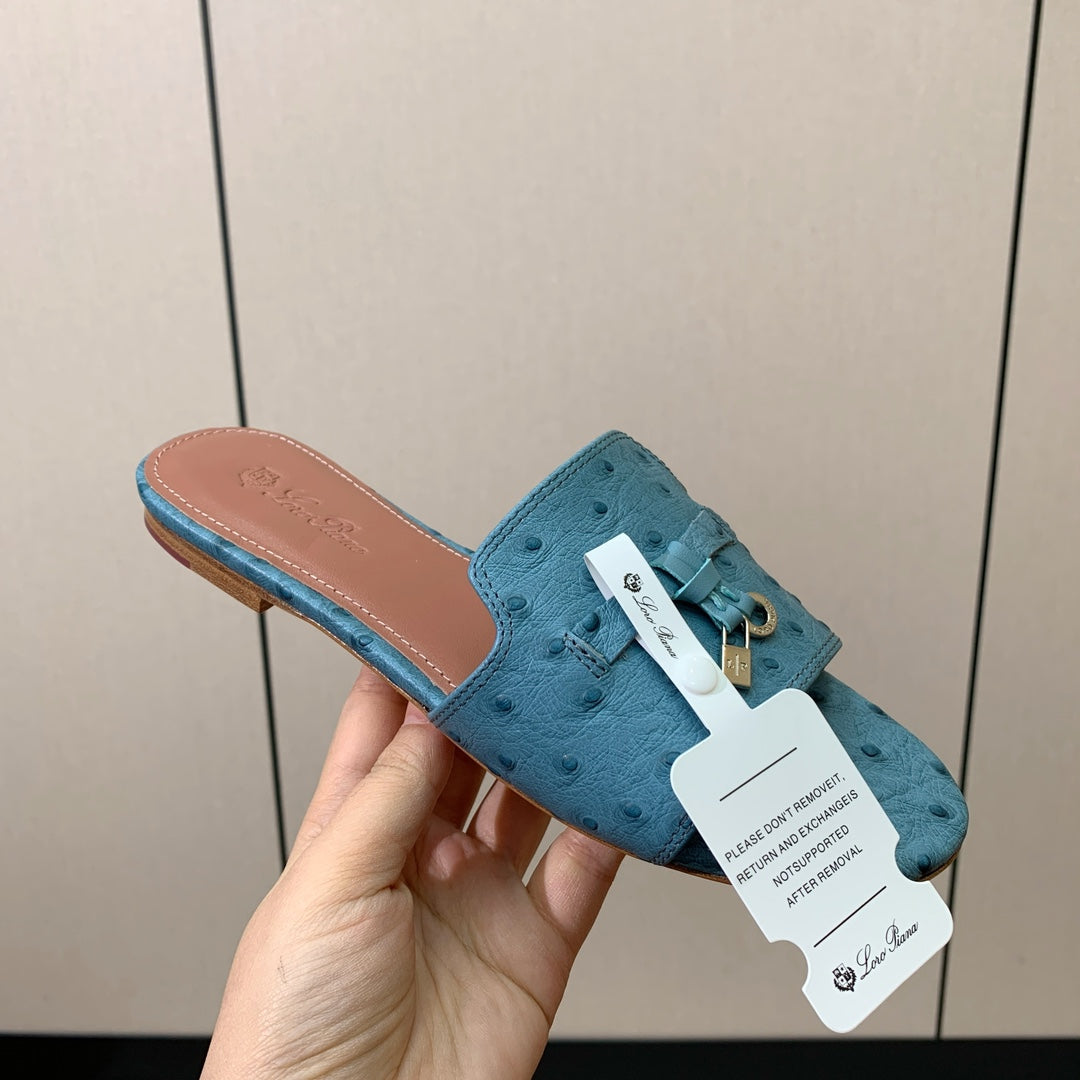 FLAT SLIPPERS IN LIGHT BLUE LAMBSKIN OSTRICH SKIN
