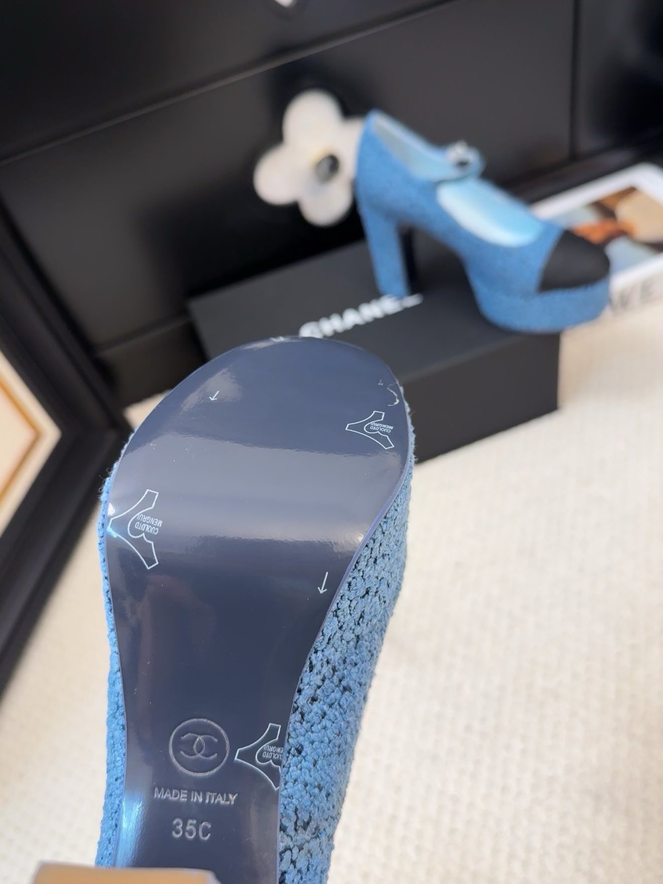 FLATFORM SANDAL IN AEGEAN BLUE TWEED AND BLACK FABRIC