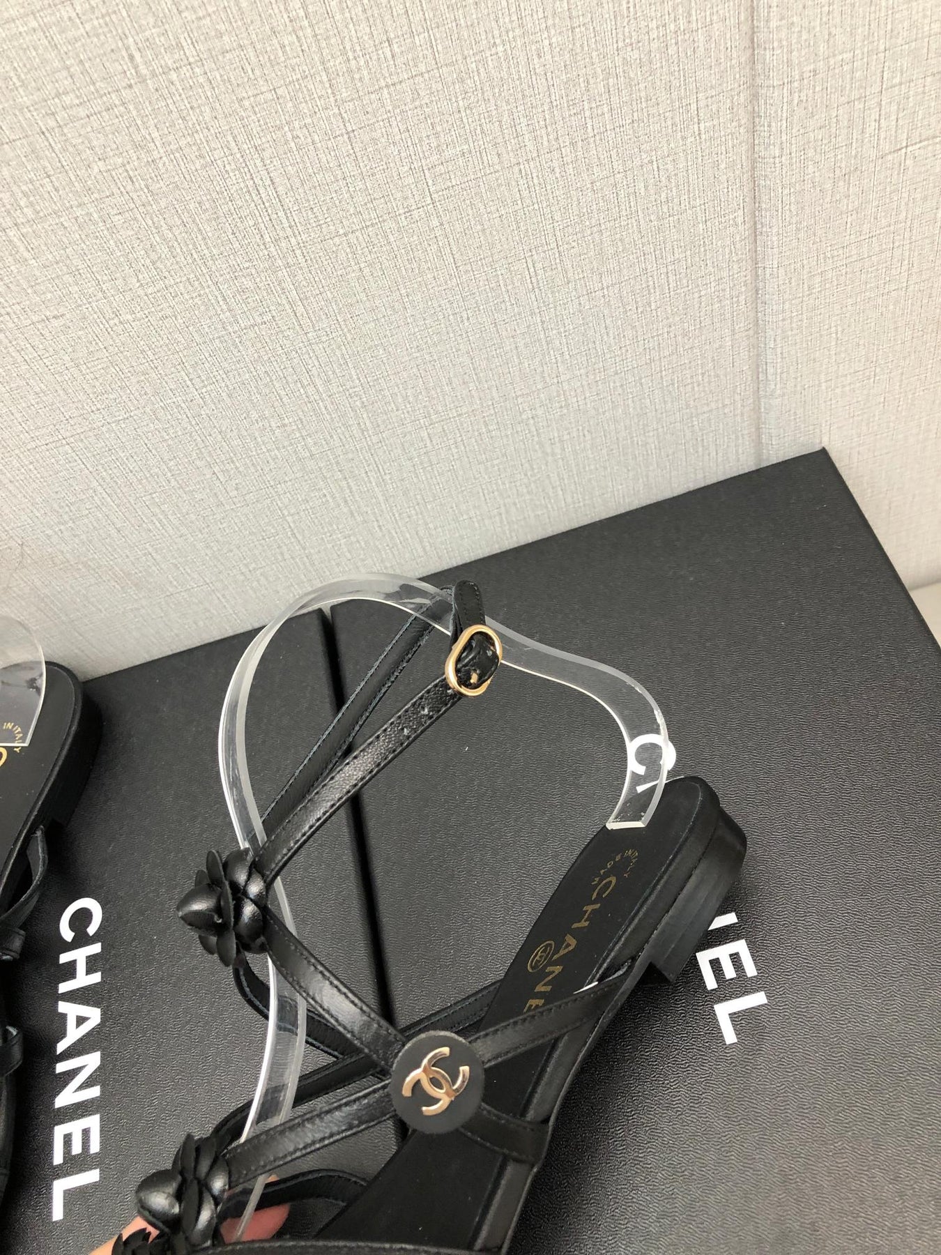 FLORAL FLAT SANDAL IN BLACK LAMBSKIN