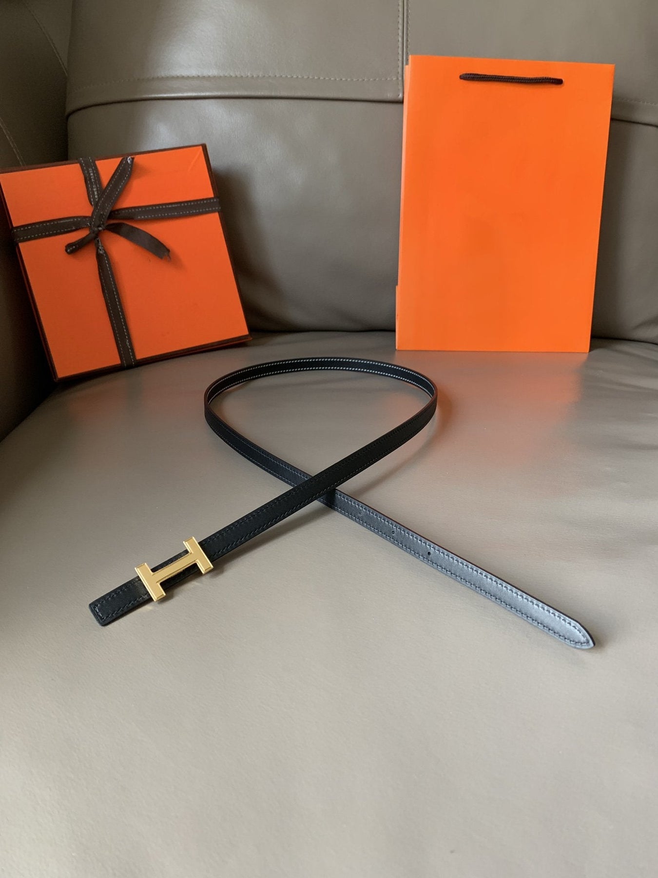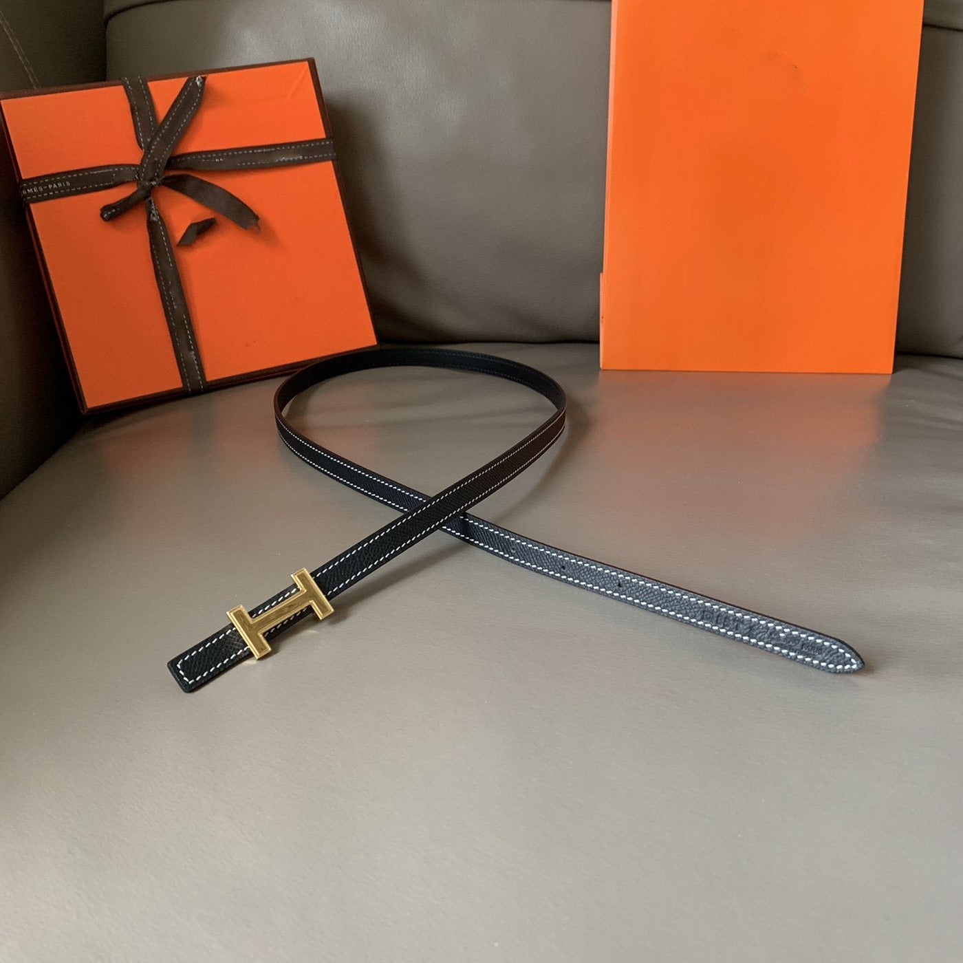 FOCUS BELT GOLD BUCKLE BLACK REVERSIBLE LEATHER 1.3CM