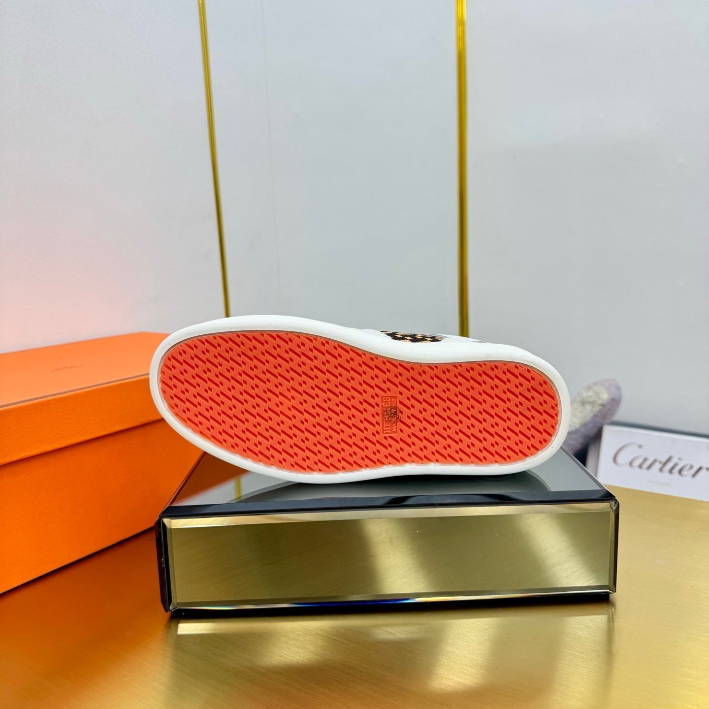 FREE SNEAKER IN WHITE CALFSKIN AND "H EN BIAIS" BROWN CANVAS