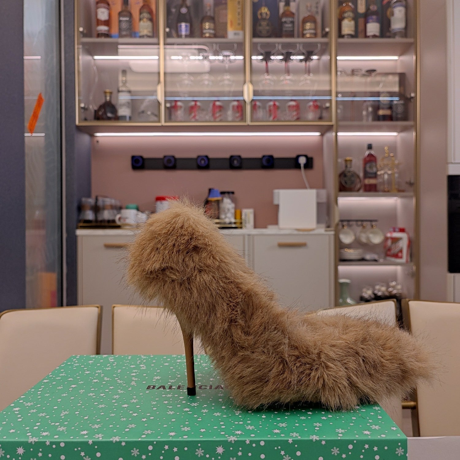 FURRY PUMPS 90MM IN BROWN FOX FUR