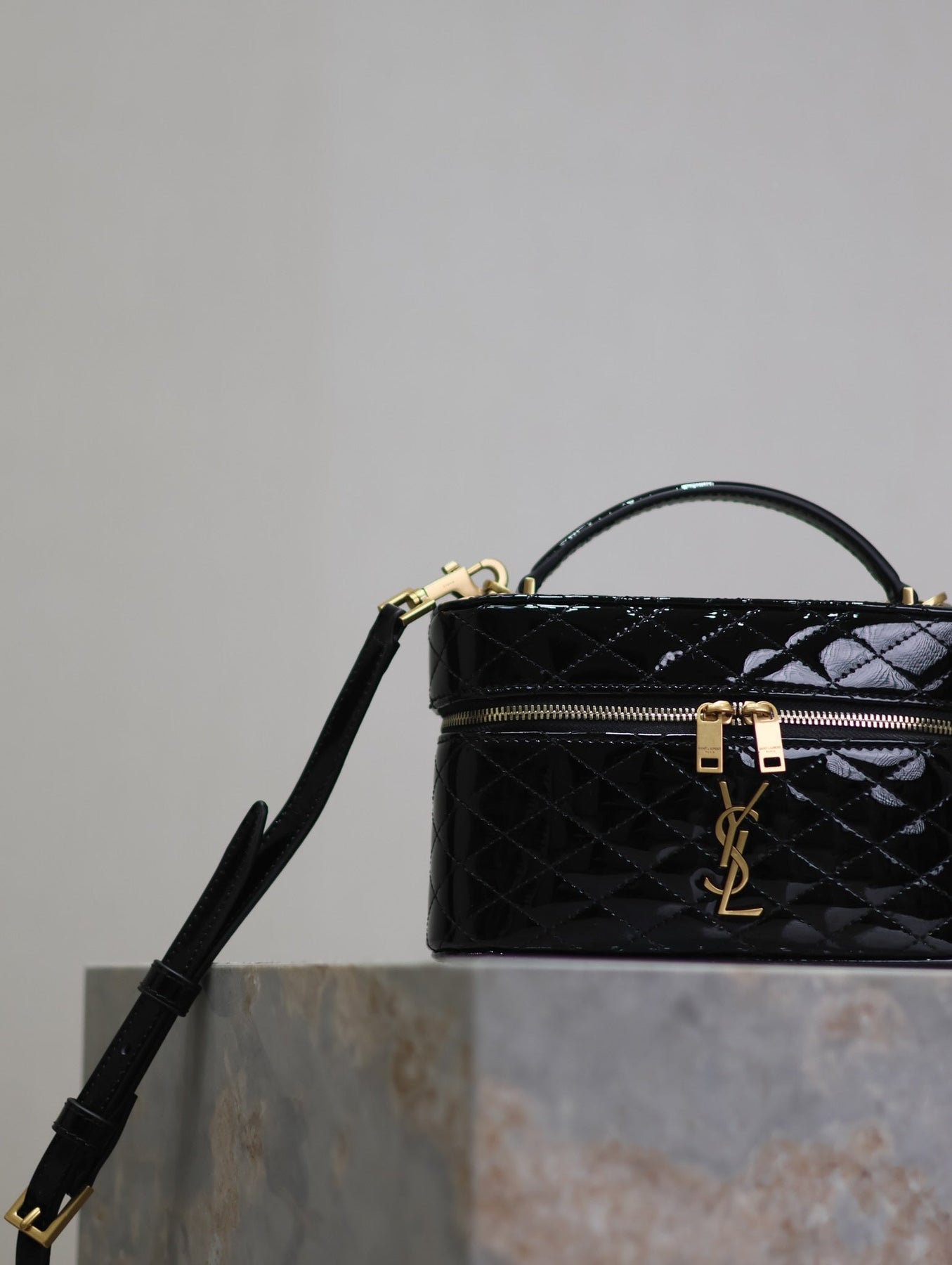 GABY MINI VANITY 18 IN BLACK GLOSSY LAMBSKIN GOLD HARDWARE