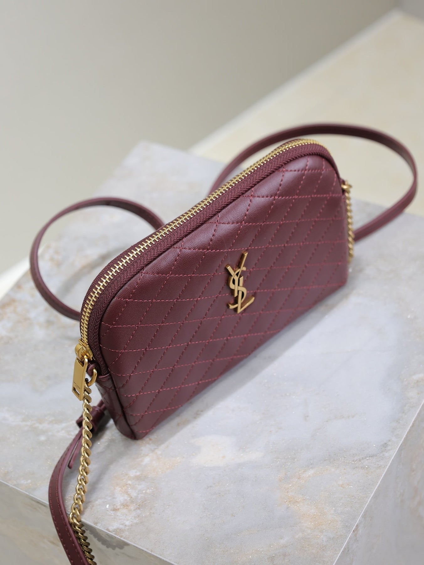 GABY ZIPPED POUCH 19 IN WINE RED QUILTED LAMBSKIN GOLD HARDWARE