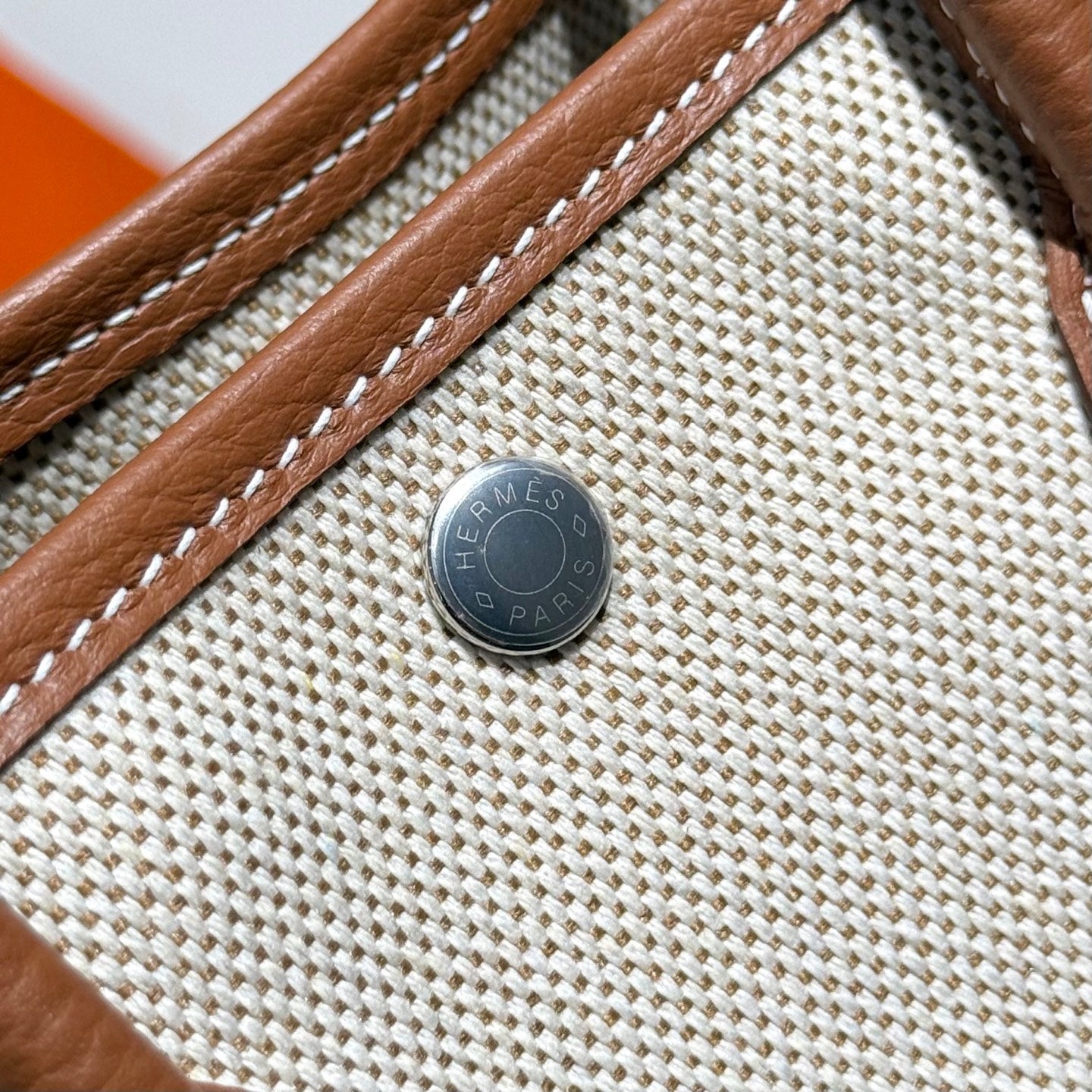 GARDEN PARTY 23CM IN WHITE TOILETS COTTON CANVAS AND BROWN CALFSKIN