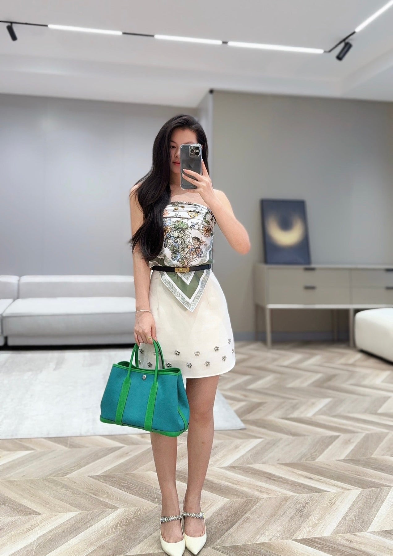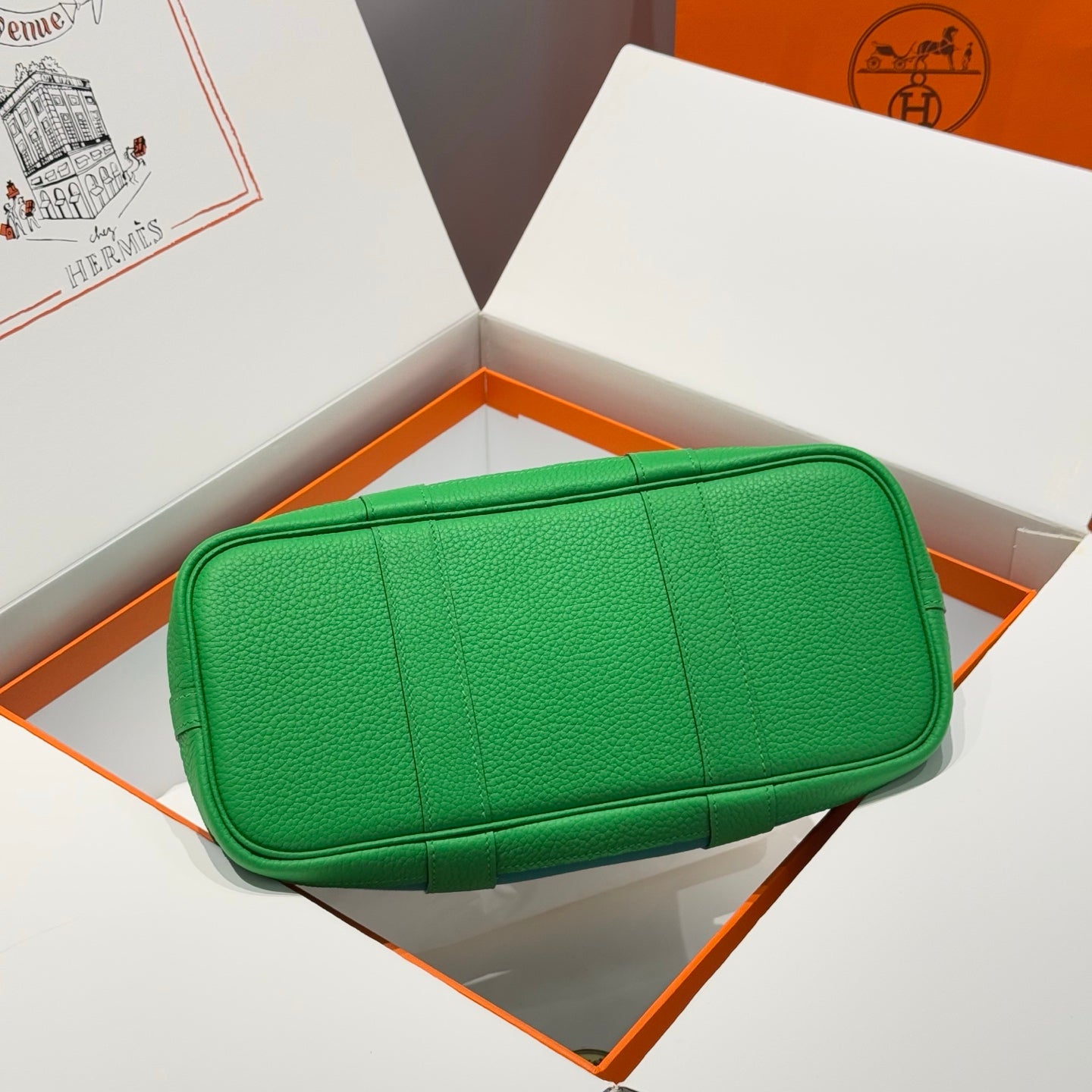 GARDEN PARTY 30CM IN CADMIUM GREEN TOILETS COTTON CANVAS AND GREEN CALFSKIN