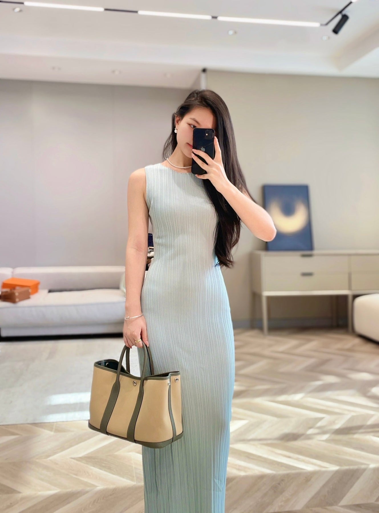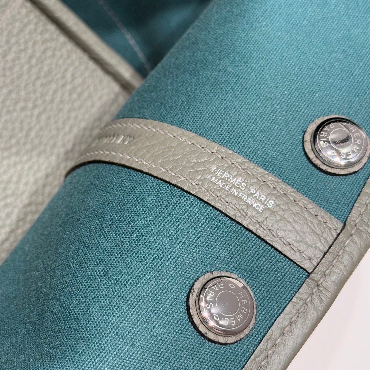 GARDEN PARTY 30CM IN DARK BEIGE TOILETS COTTON CANVAS AND GREY CALFSKIN