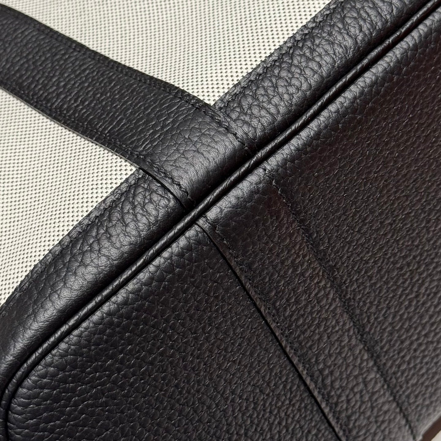GARDEN PARTY 30CM IN WHITE TOILETS COTTON CANVAS AND BLACK CALFSKIN