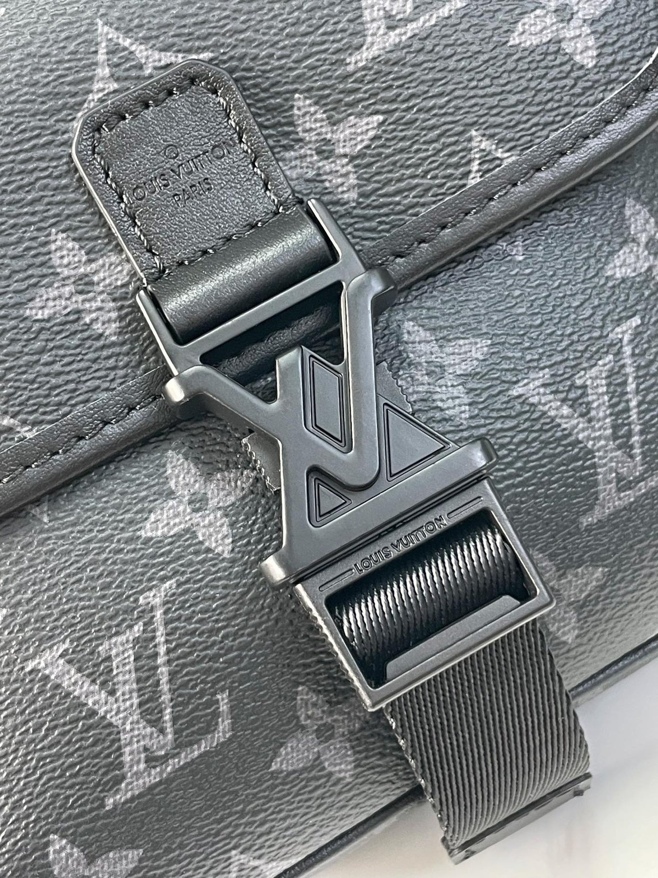 GETAWAY MESSENGER 18 IN GUN METAL MONOGRAM ECLIPSE CANVAS