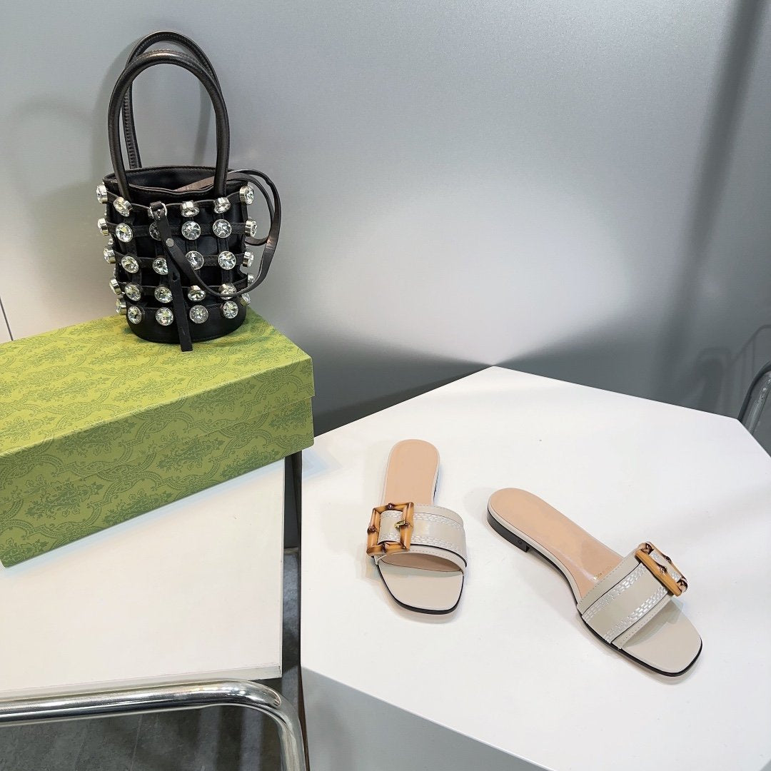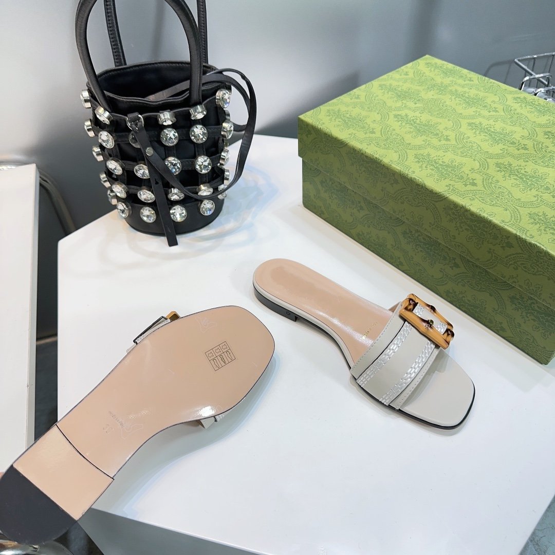 GG BAMBOO BUCKLE FLAT SANDALS WHITE