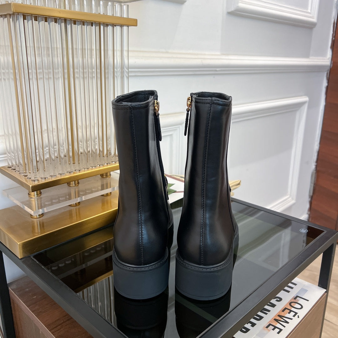 GG CLASSIC LOGO ANKLE BOOTS IN BLACK CALFSKIN