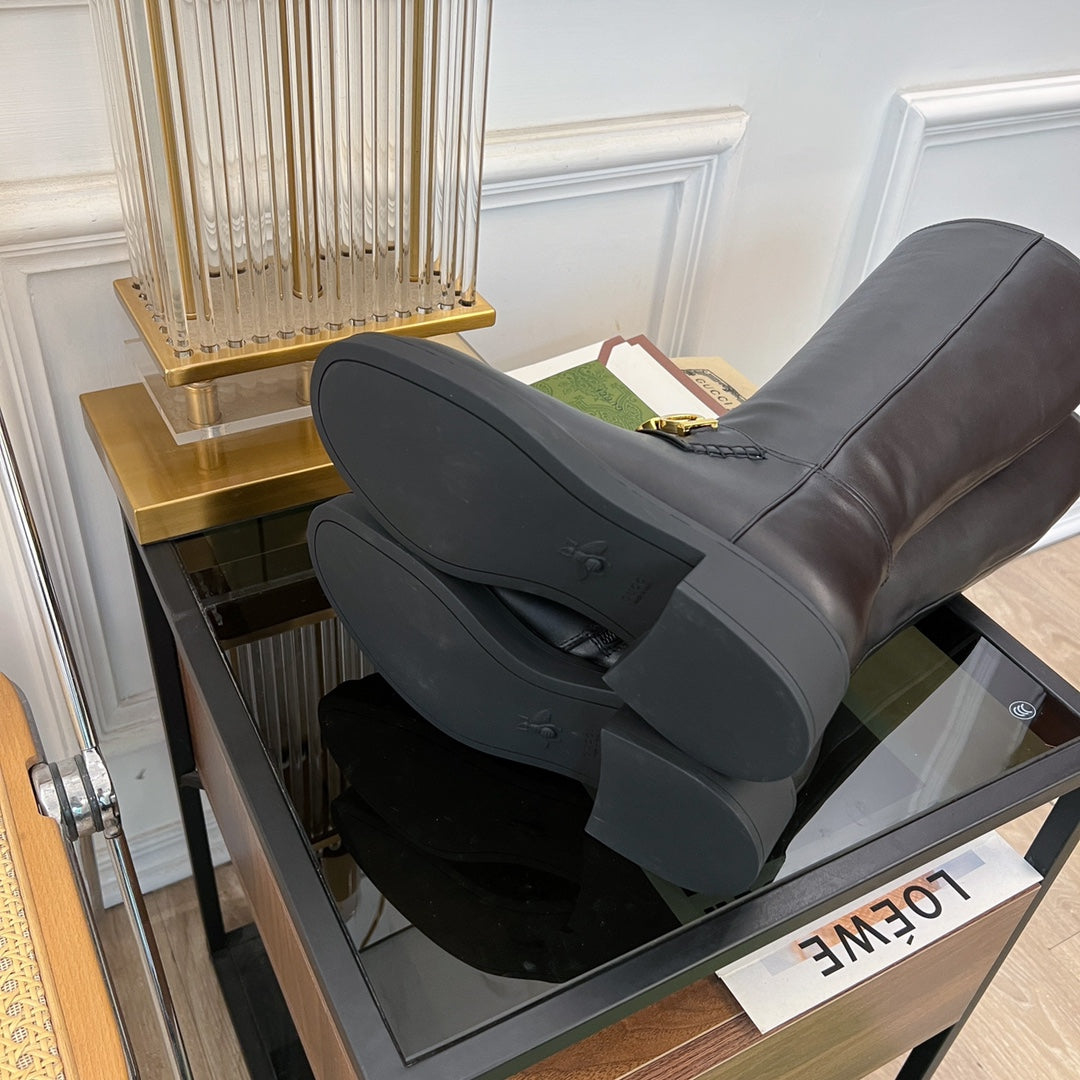 GG CLASSIC LOGO KNEE HIGH BOOTS IN BLACK CALFSKIN