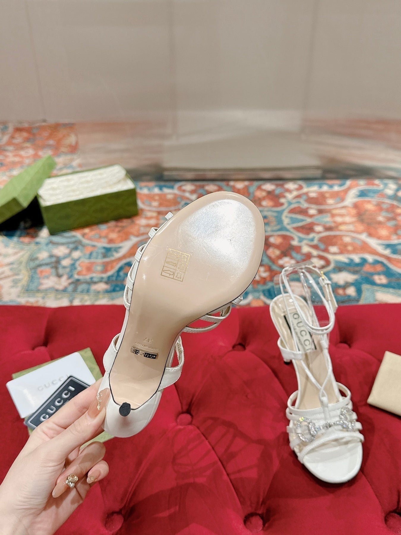 GG CRYSTAL HORSEBIT SANDAL WHITE LAMBSKIN