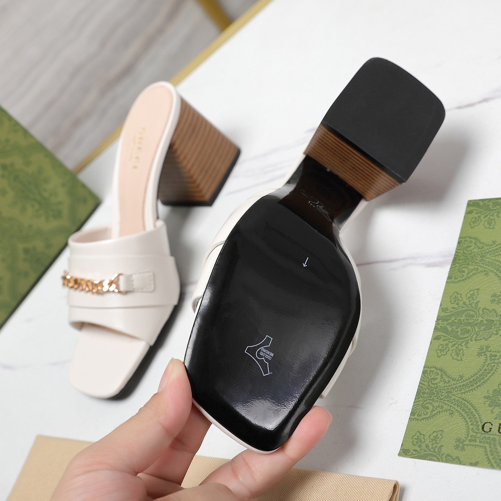 GG High Heels Half Slippers White