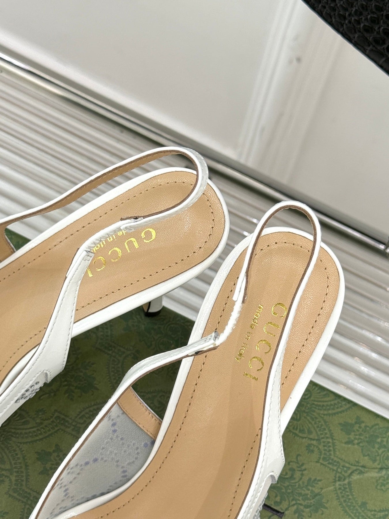 GG HIGH SLINGBACK 8.5 CM IN WHITE CLASSIC POINTED-TOE MESH WITH RHINESTONE EMBELLISHMENTS