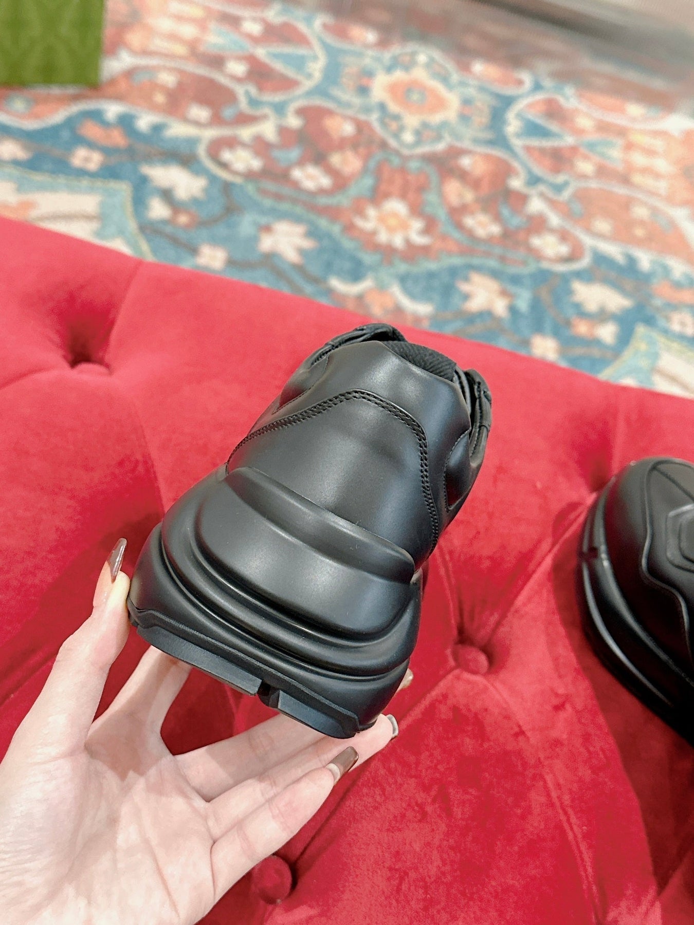 GG RHYTON TRAINER BLACK CALFSKIN WITH WHITE LOGO