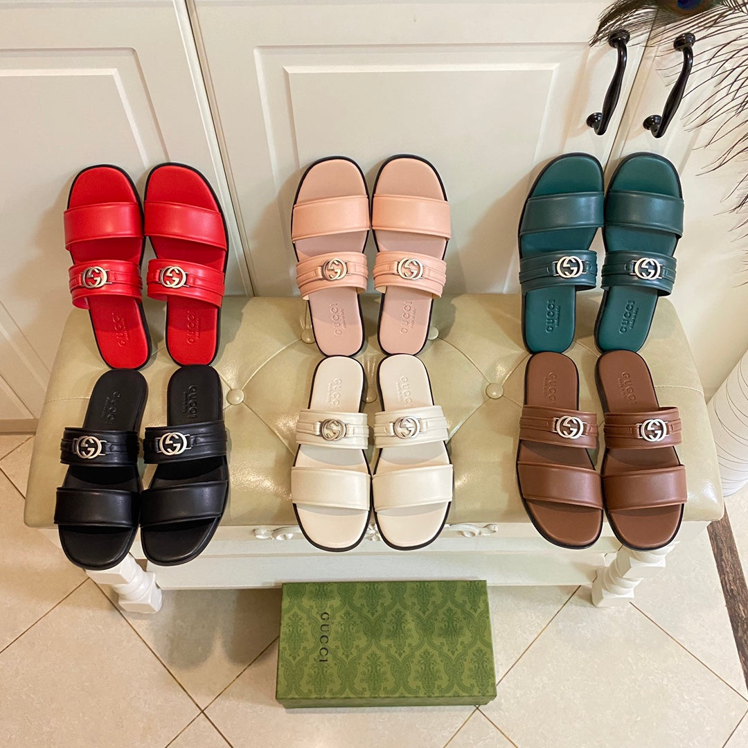 GG SANDAL WITH ROUND INTERLOCKING G IN LIGHT PINK CALFSKIN
