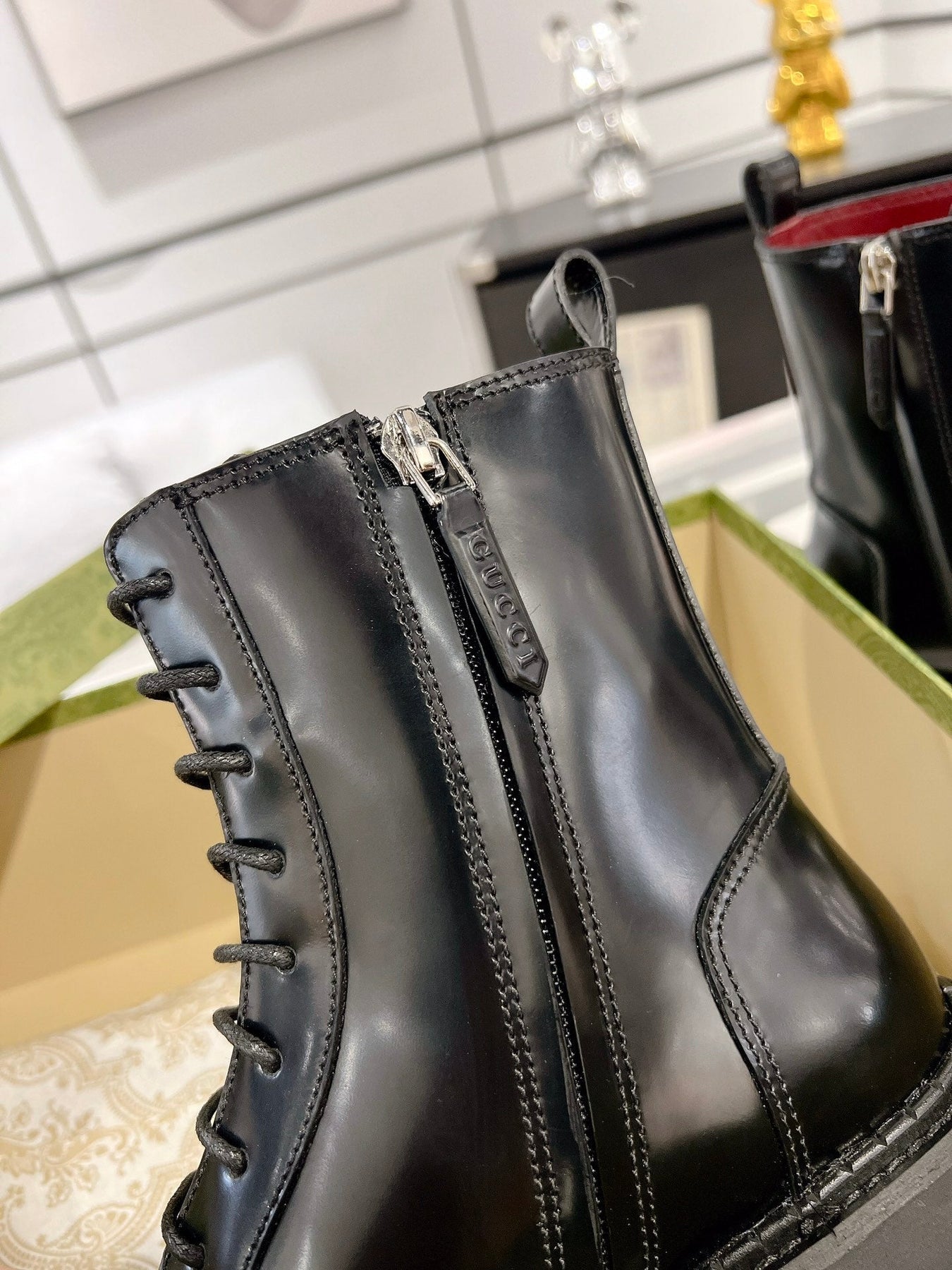 GG WEB ANKLE BOOTS IN BLACK CALFSKIN
