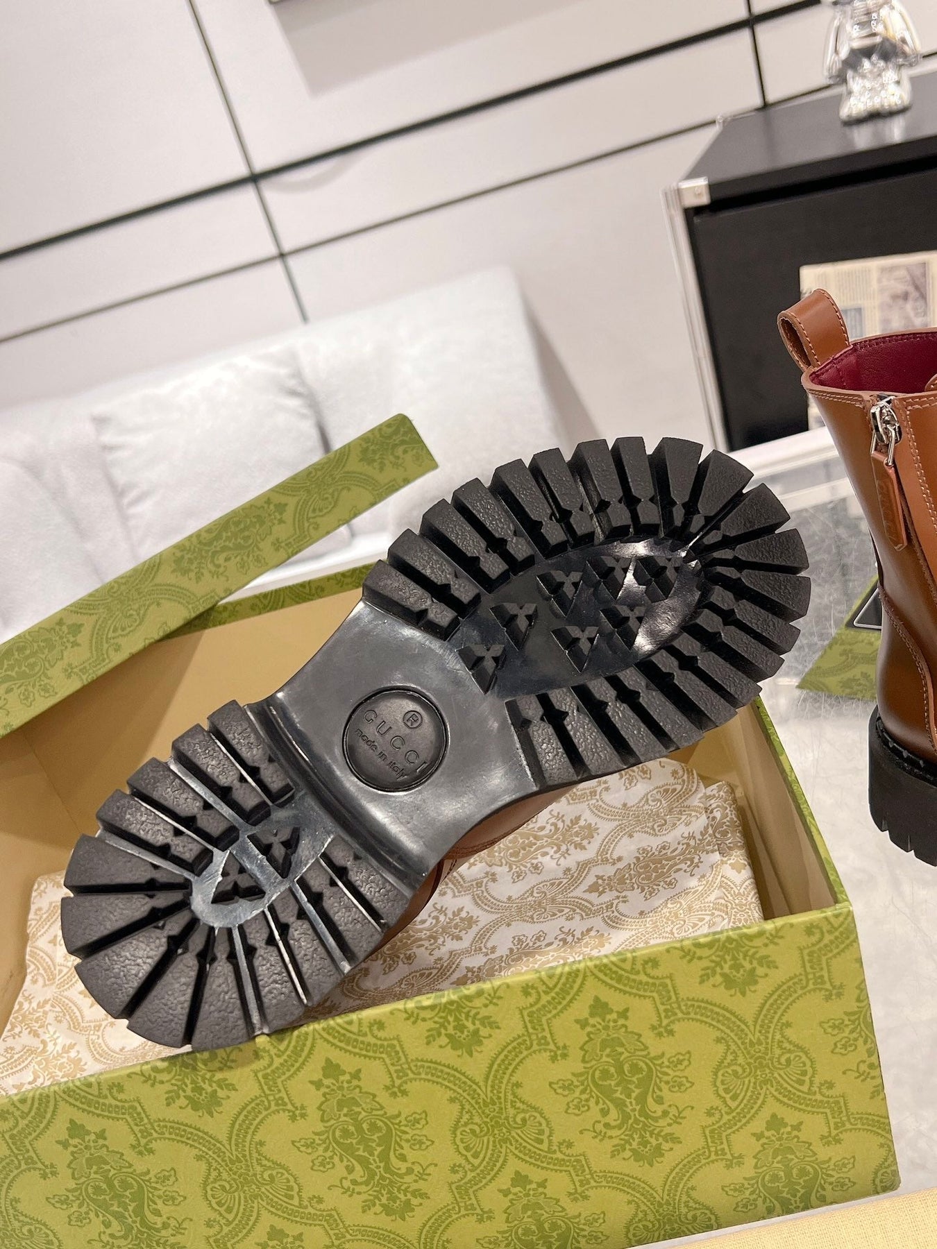 GG WEB ANKLE BOOTS IN CINNAMON BROWN CALFSKIN
