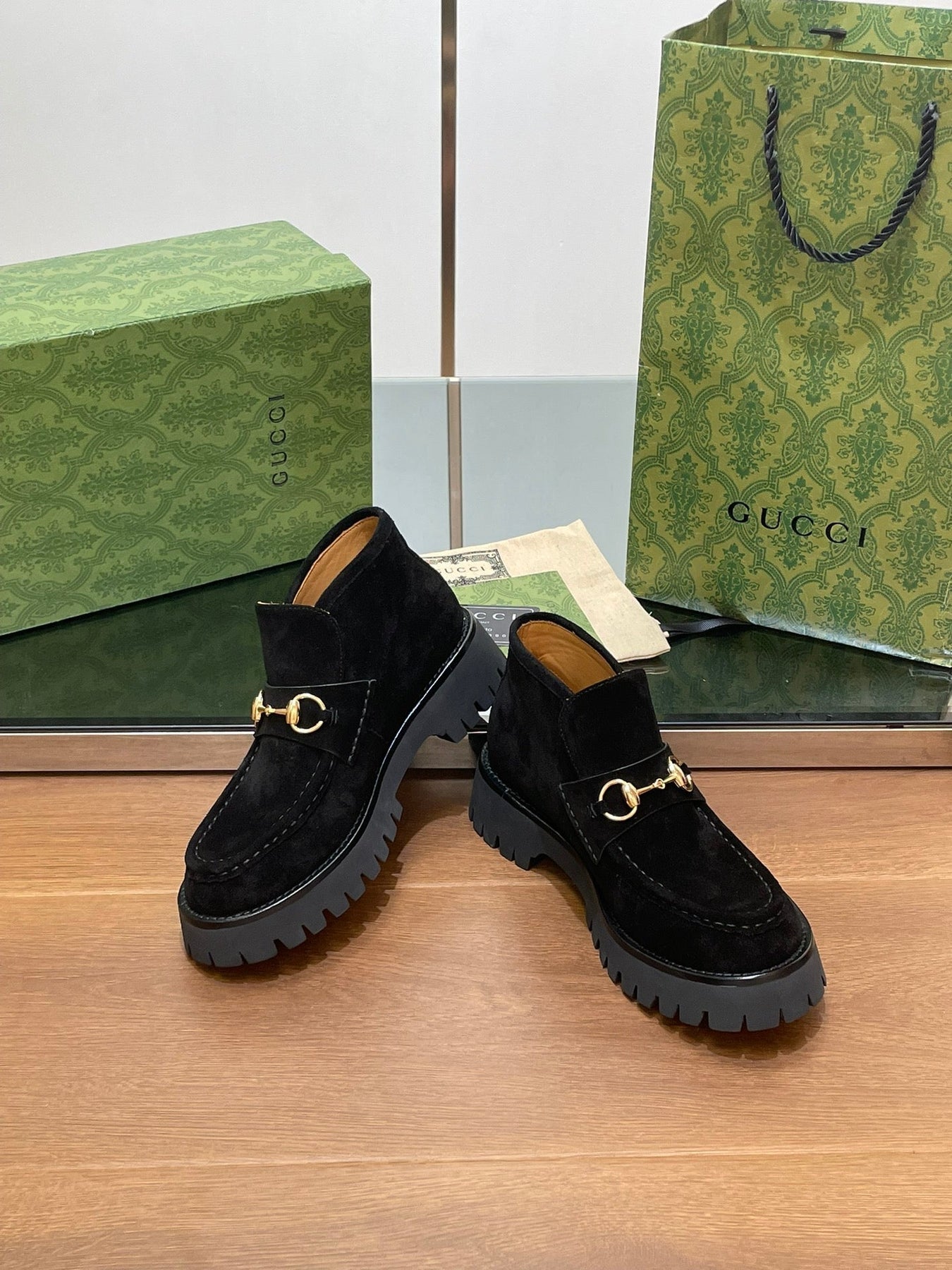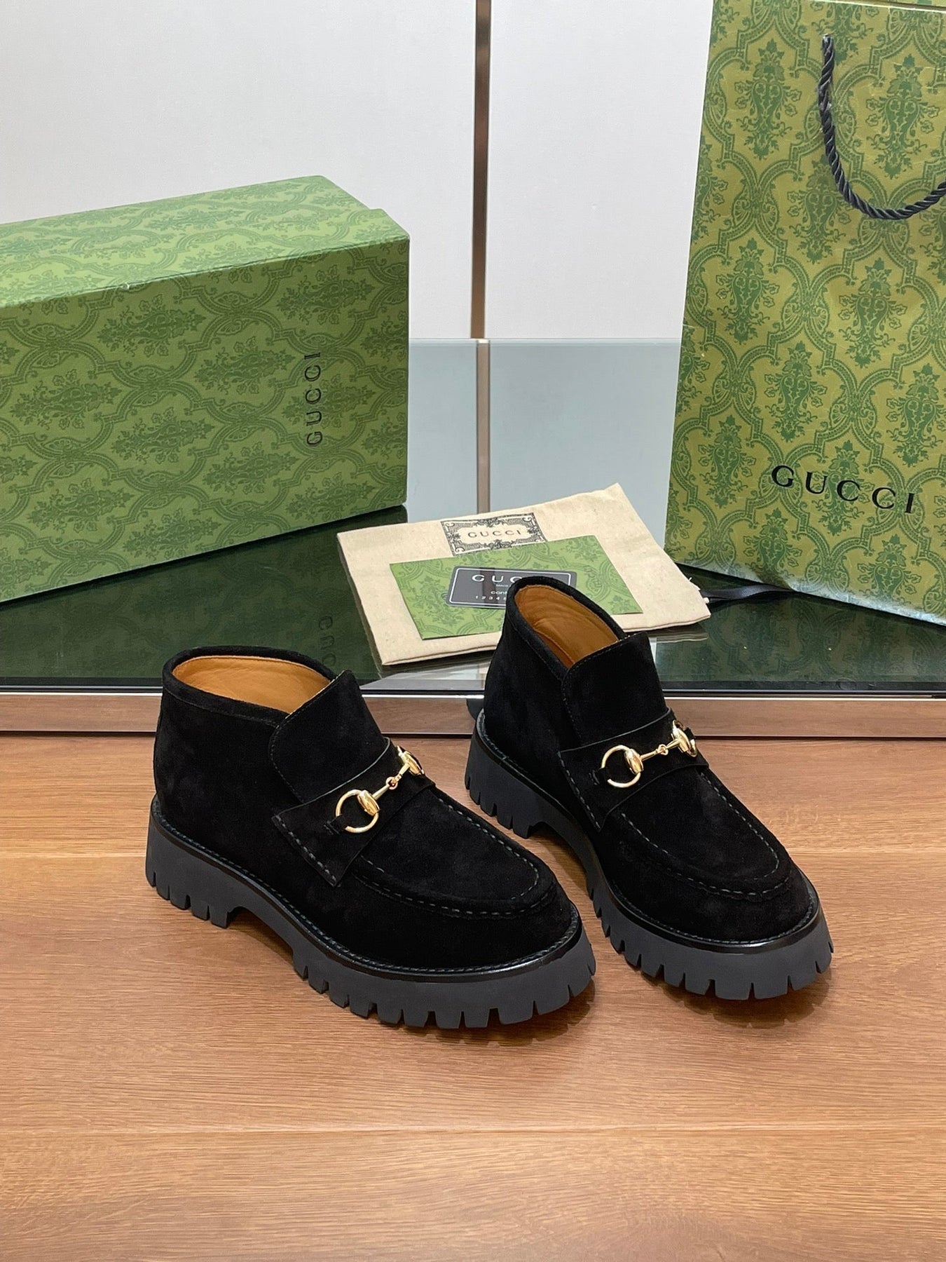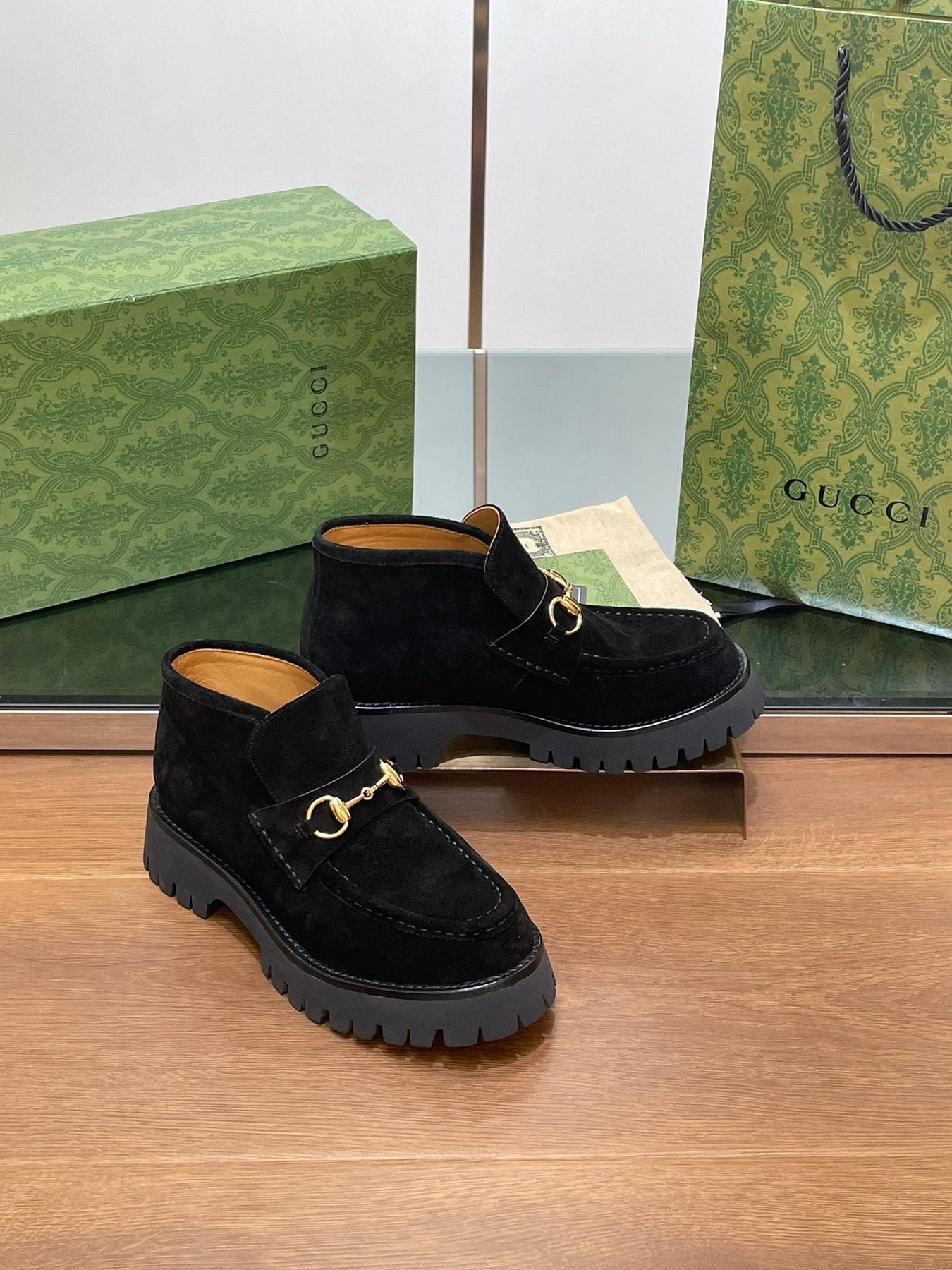 GG WOMEN'S HORSEBIT ANKLE BOOTS 4.5CM IN BLACK SUEDE