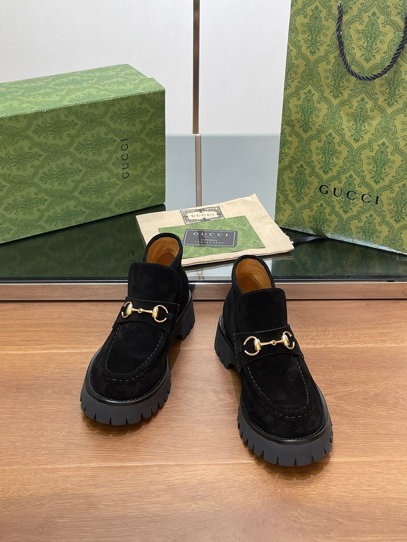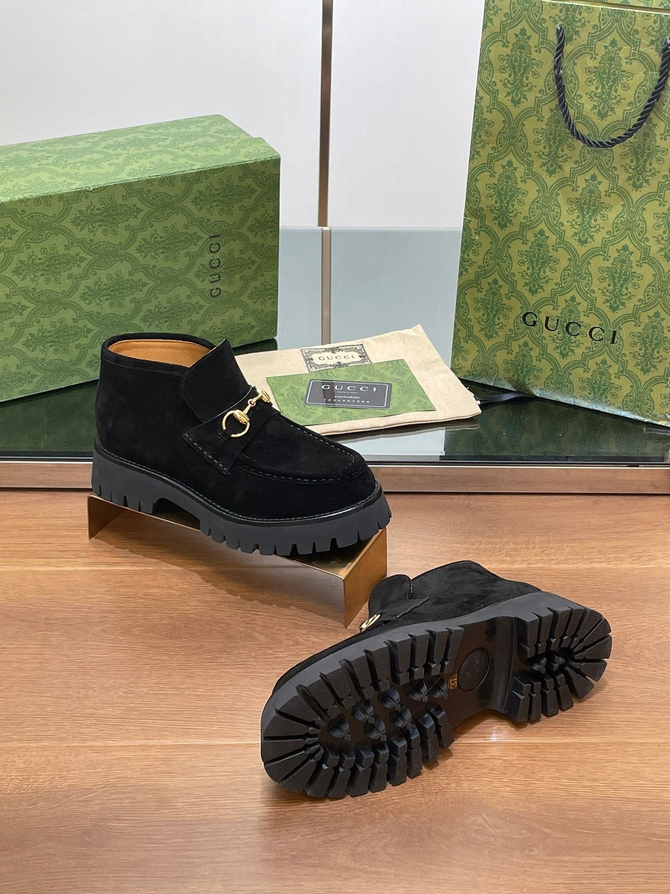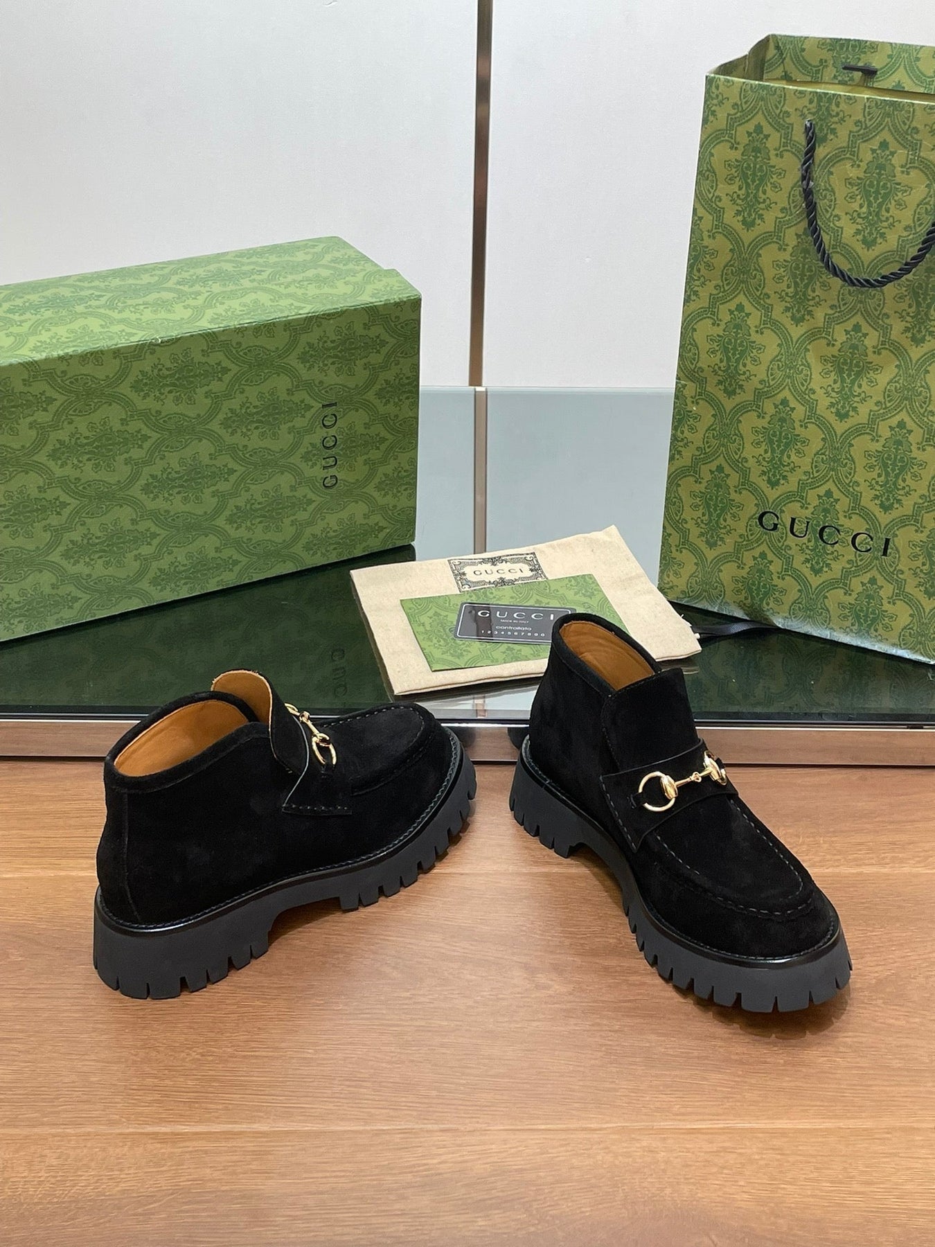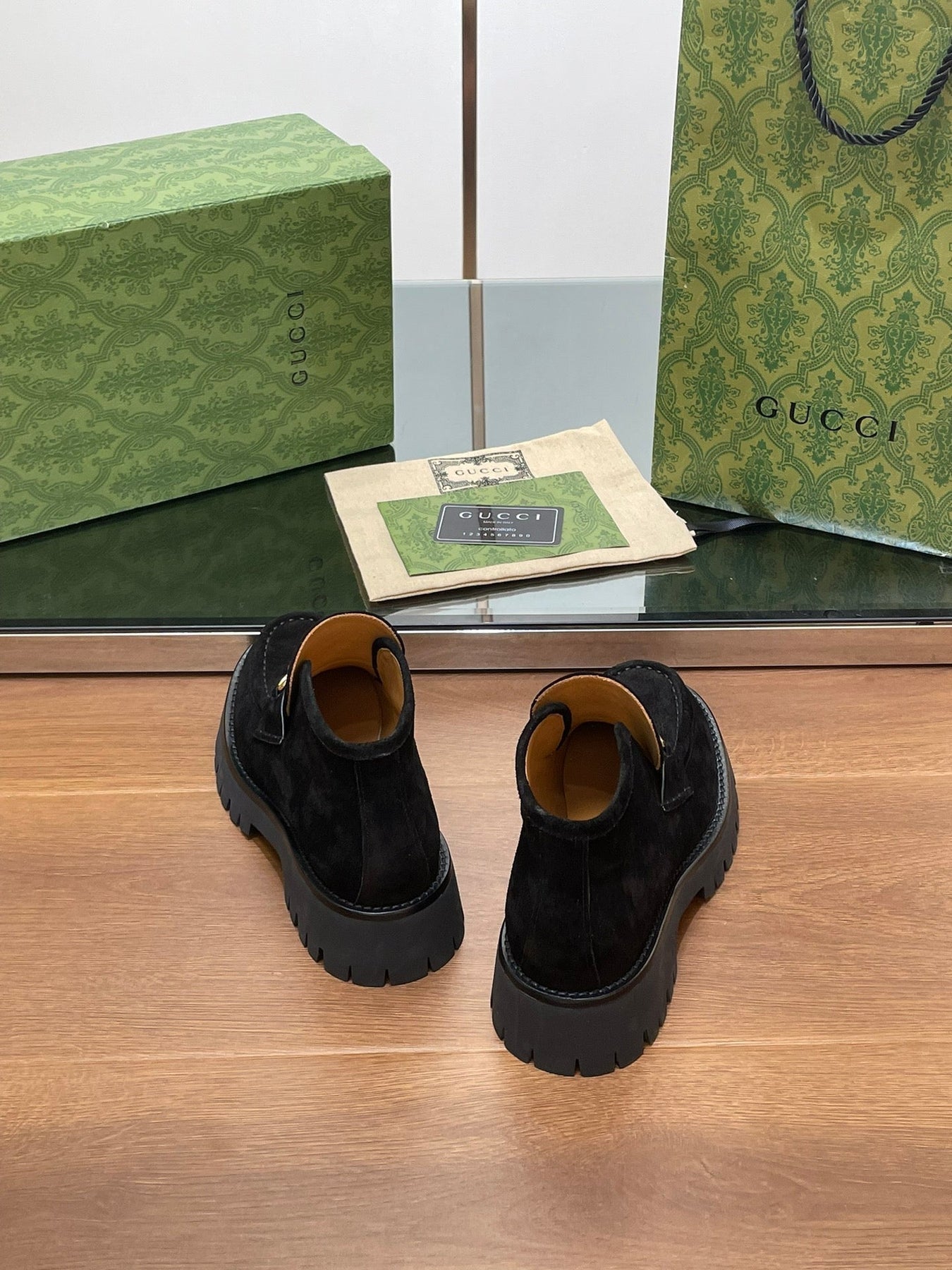 GG WOMEN'S HORSEBIT ANKLE BOOTS 4.5CM IN BLACK SUEDE