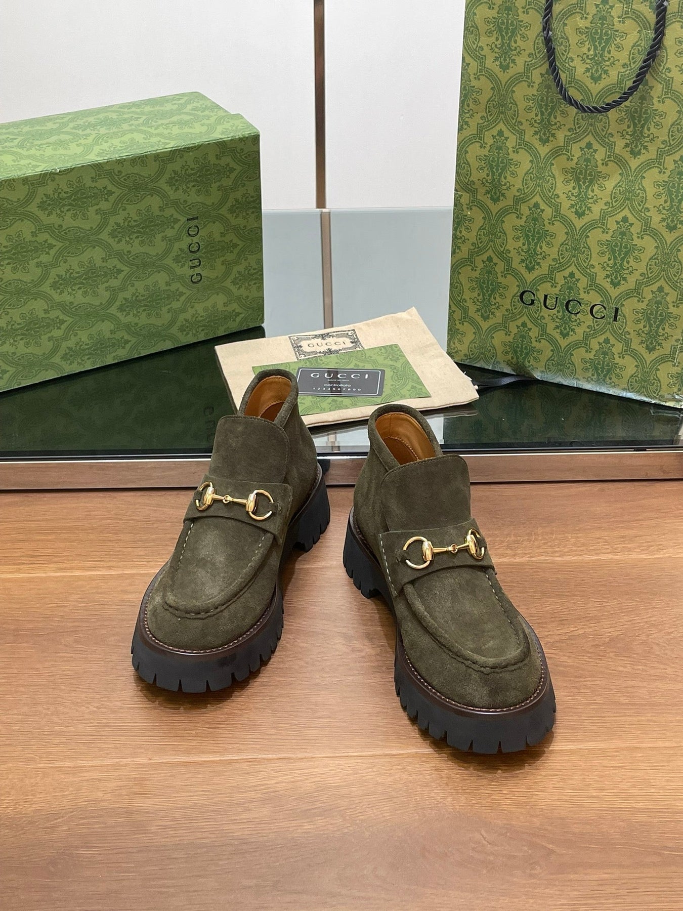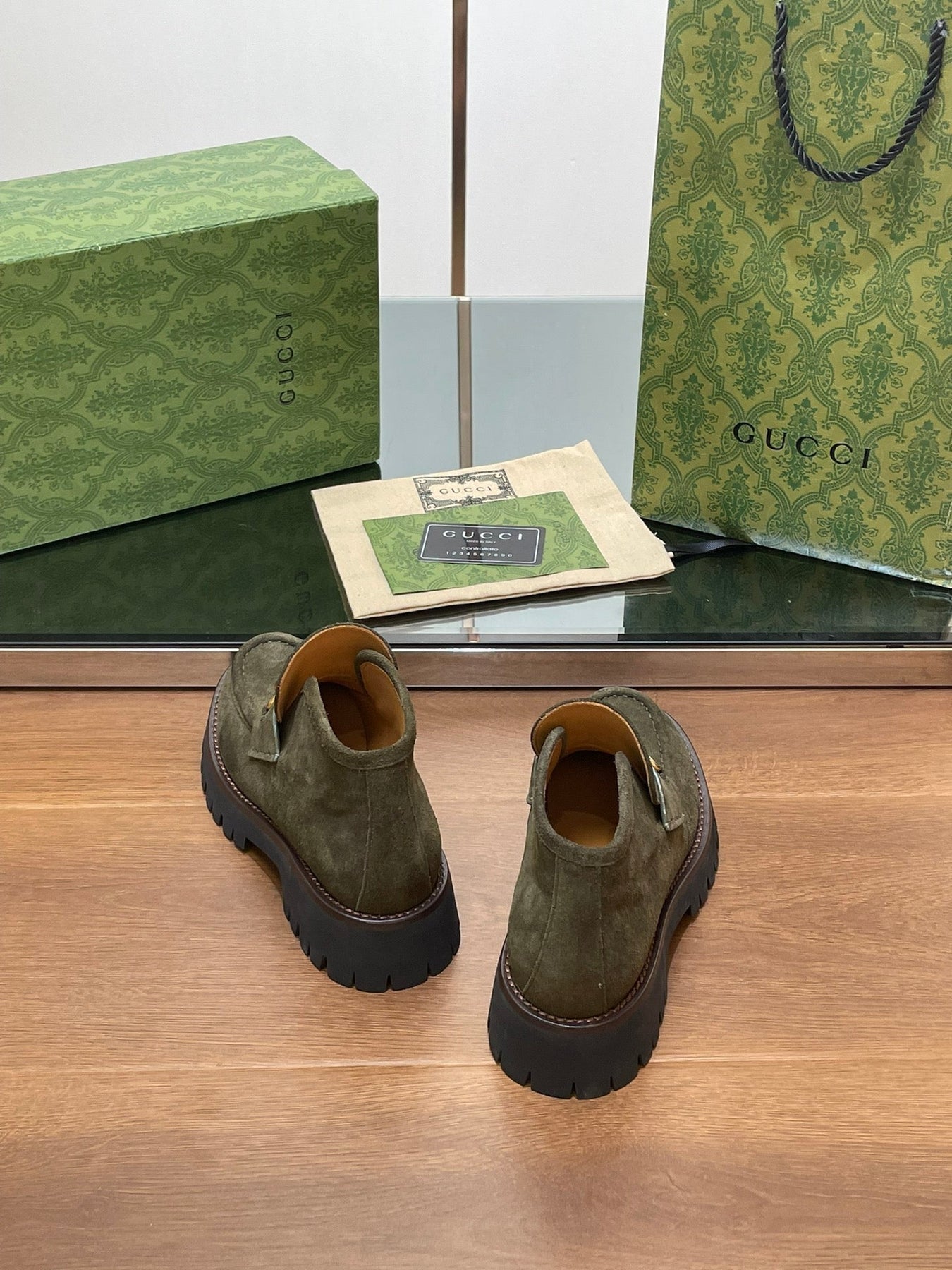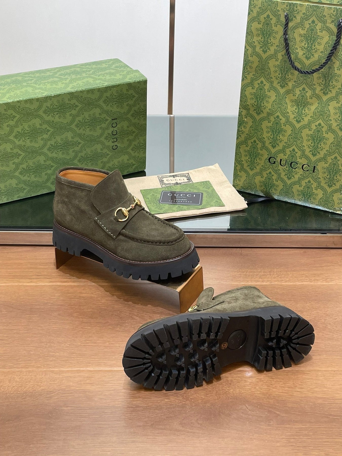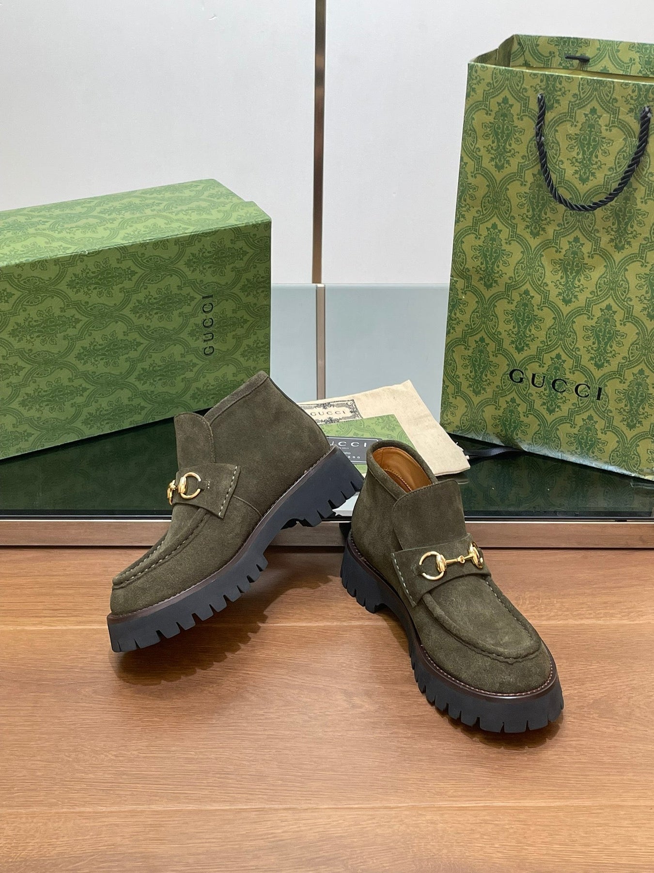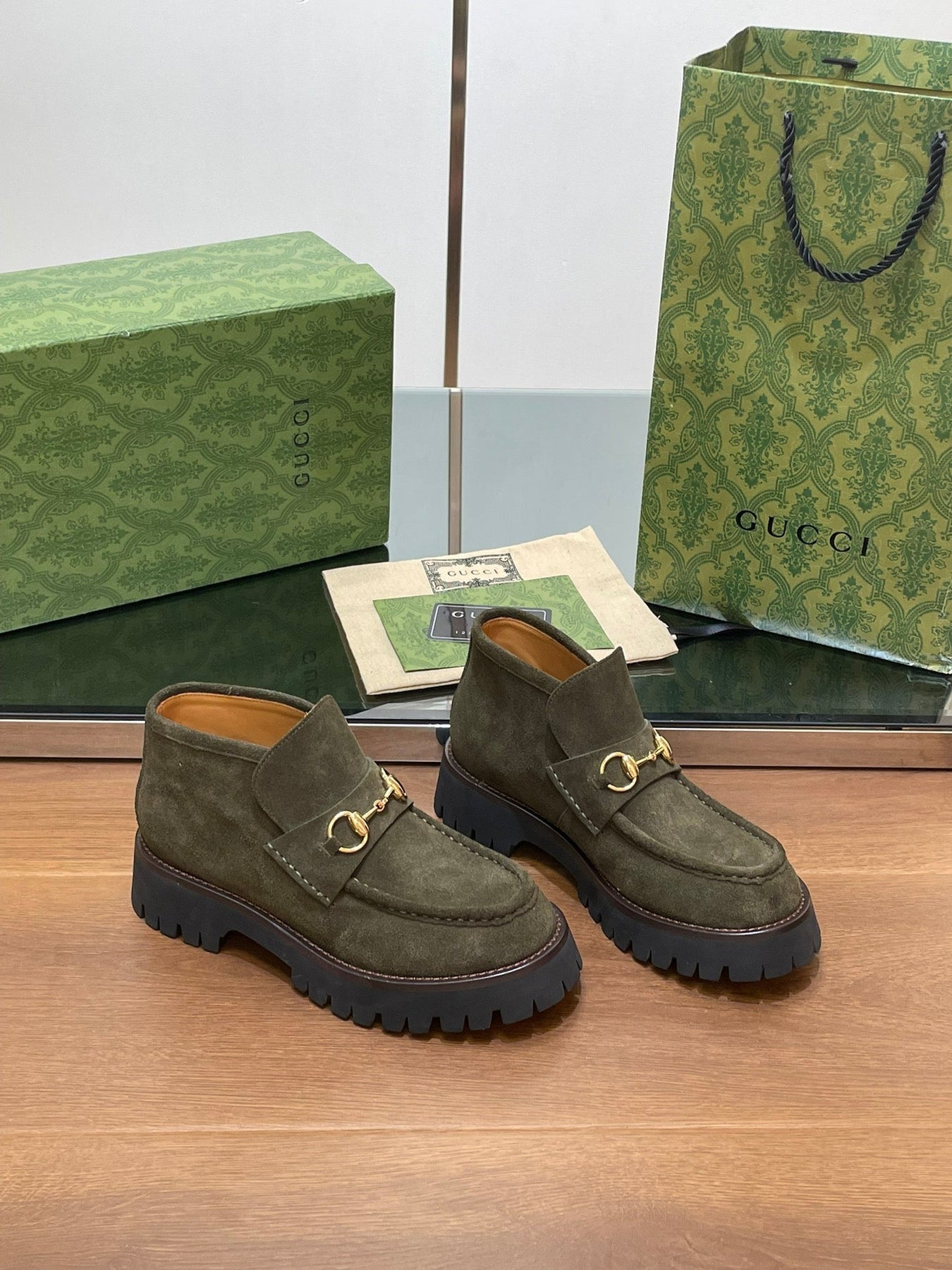 GG WOMEN'S HORSEBIT ANKLE BOOTS 4.5CM IN KHAKI GREEN SUEDE