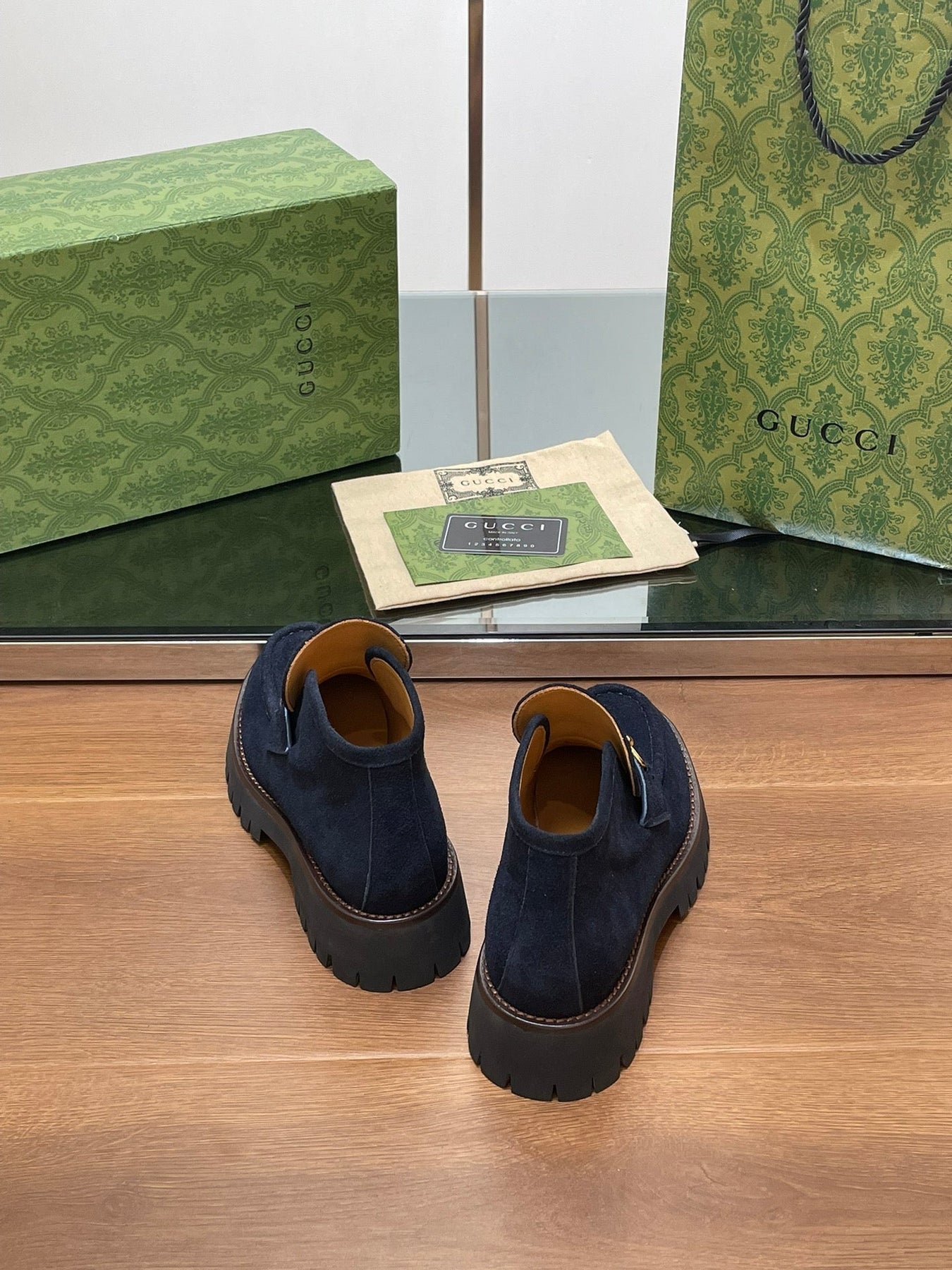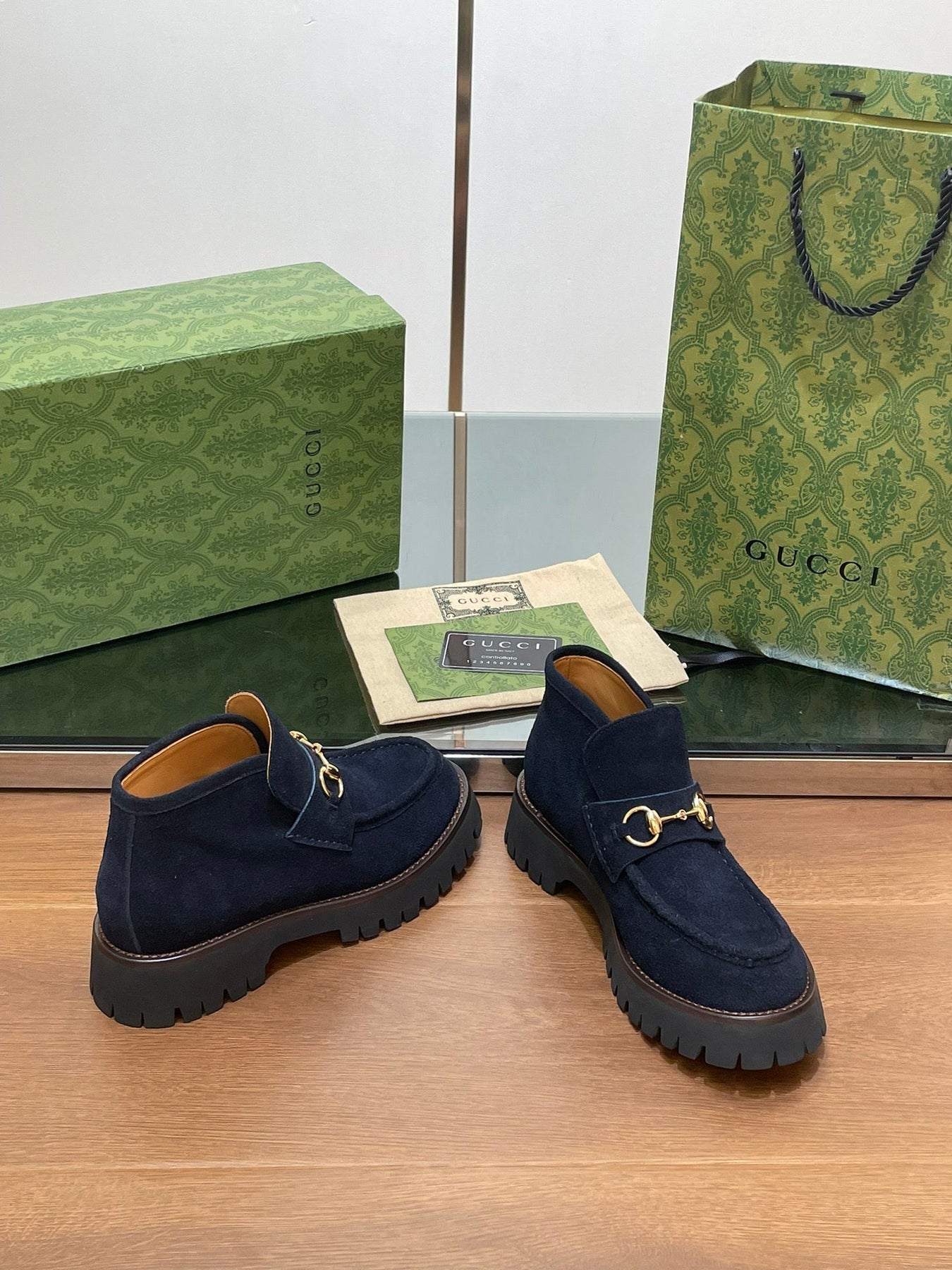 GG WOMEN'S HORSEBIT ANKLE BOOTS 4.5CM IN NAVY BLUE SUEDE