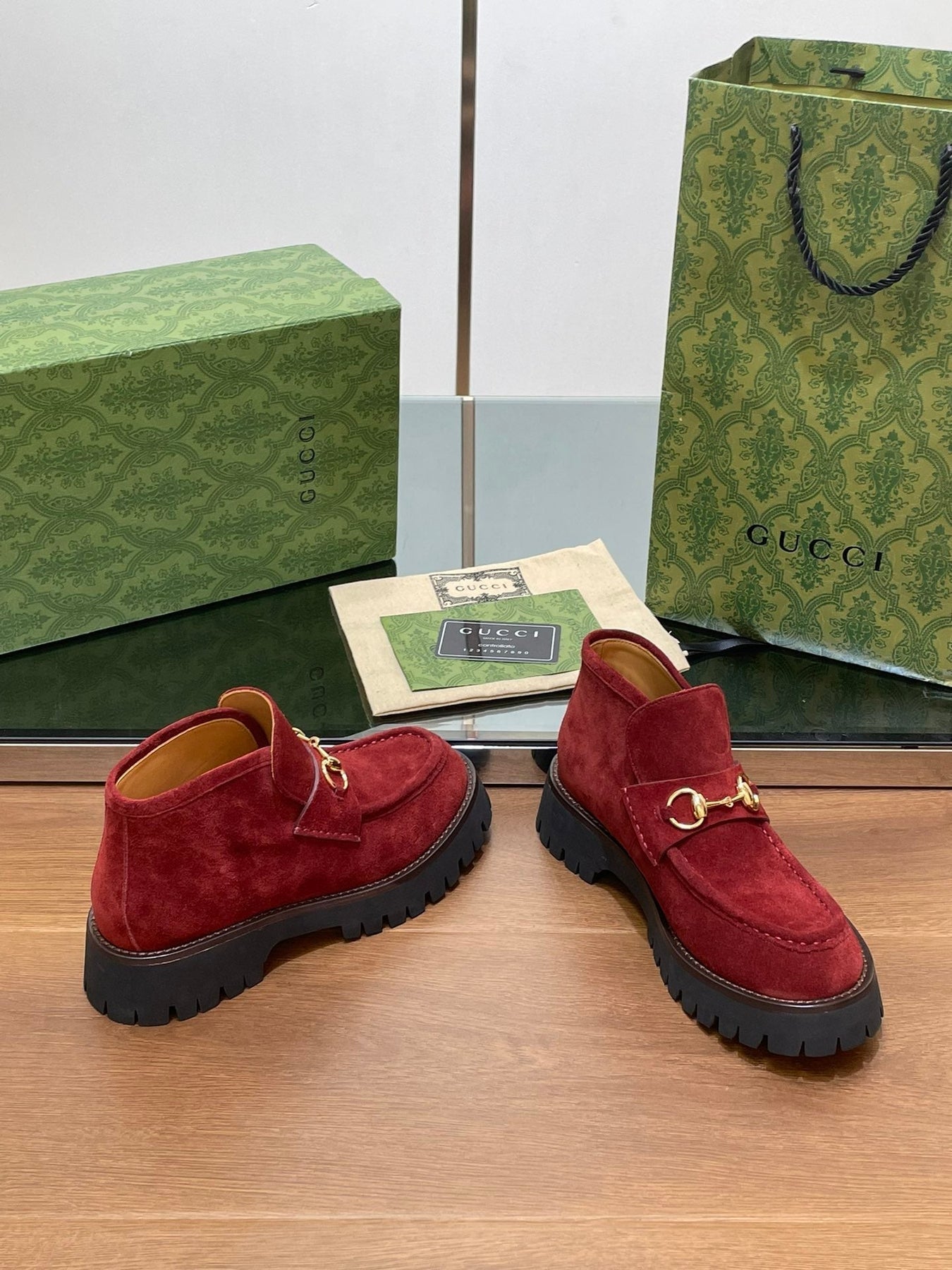 GG WOMEN'S HORSEBIT ANKLE BOOTS 4.5CM IN RED SUEDE