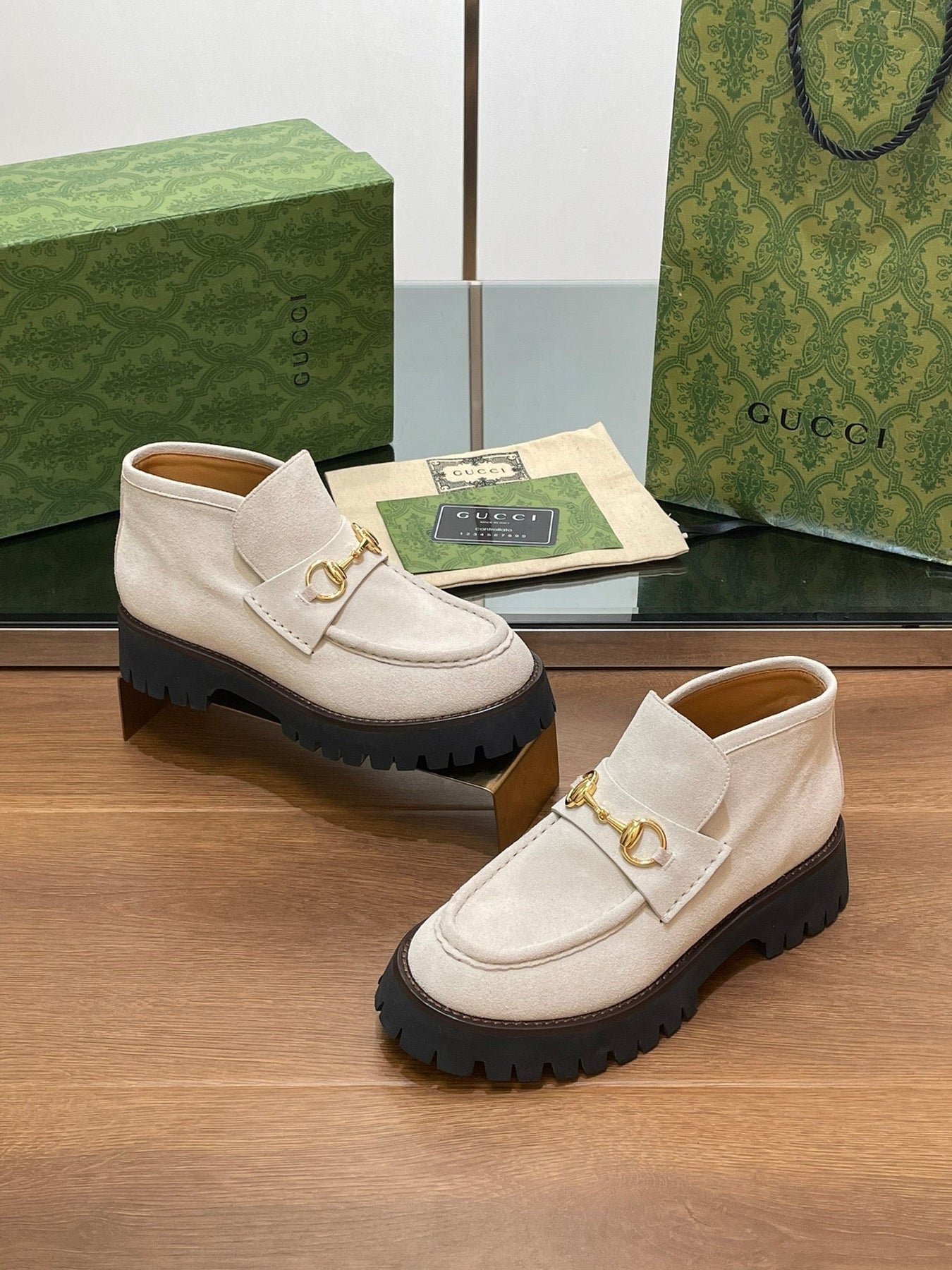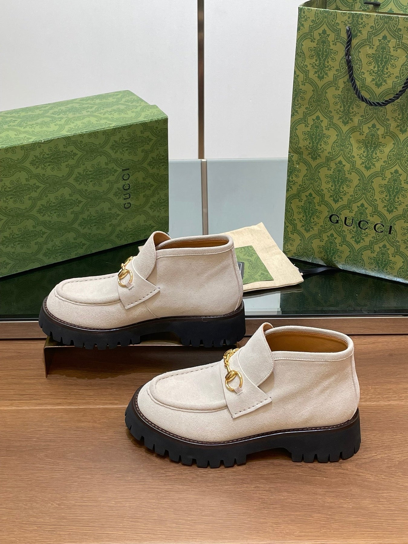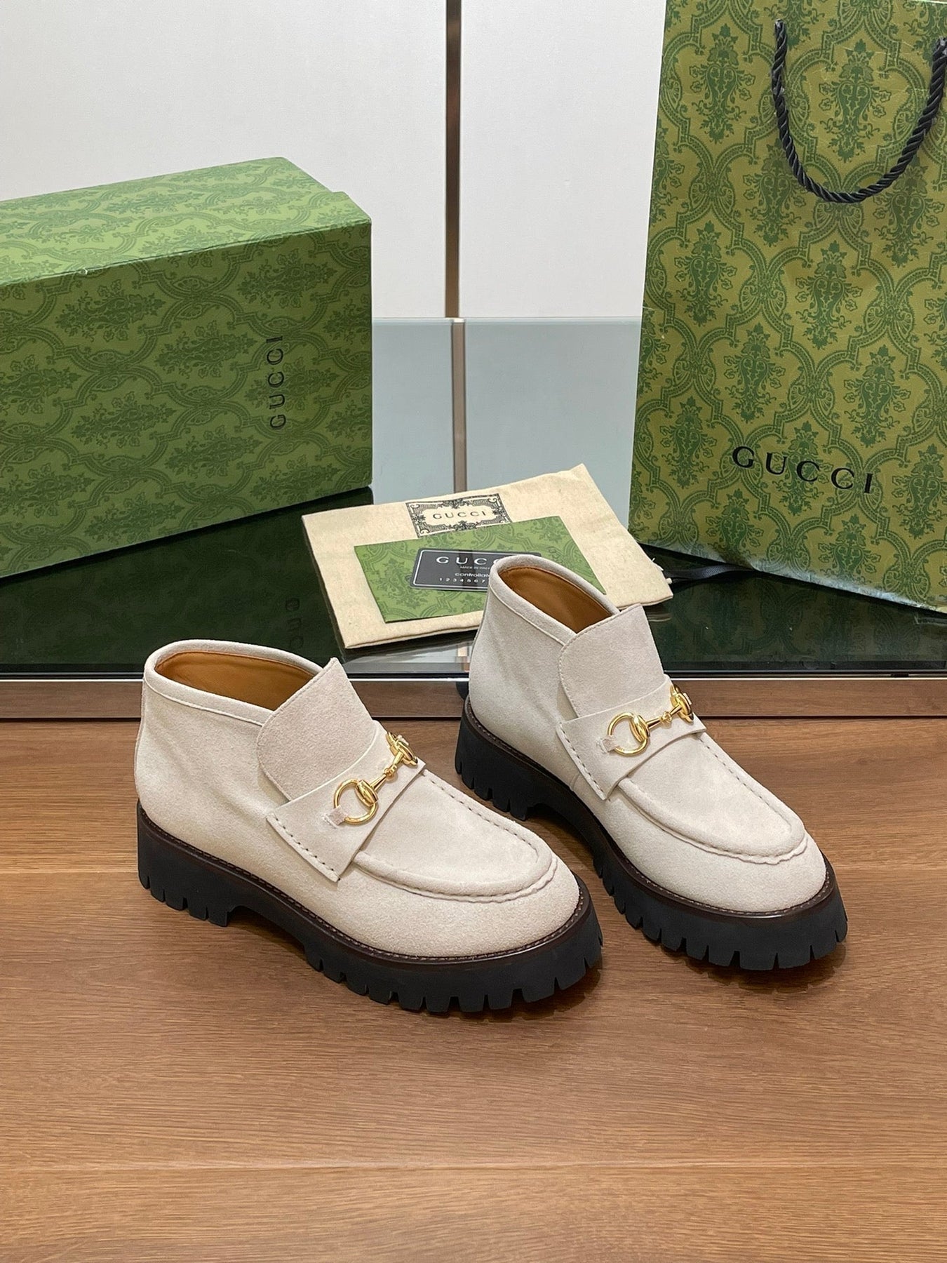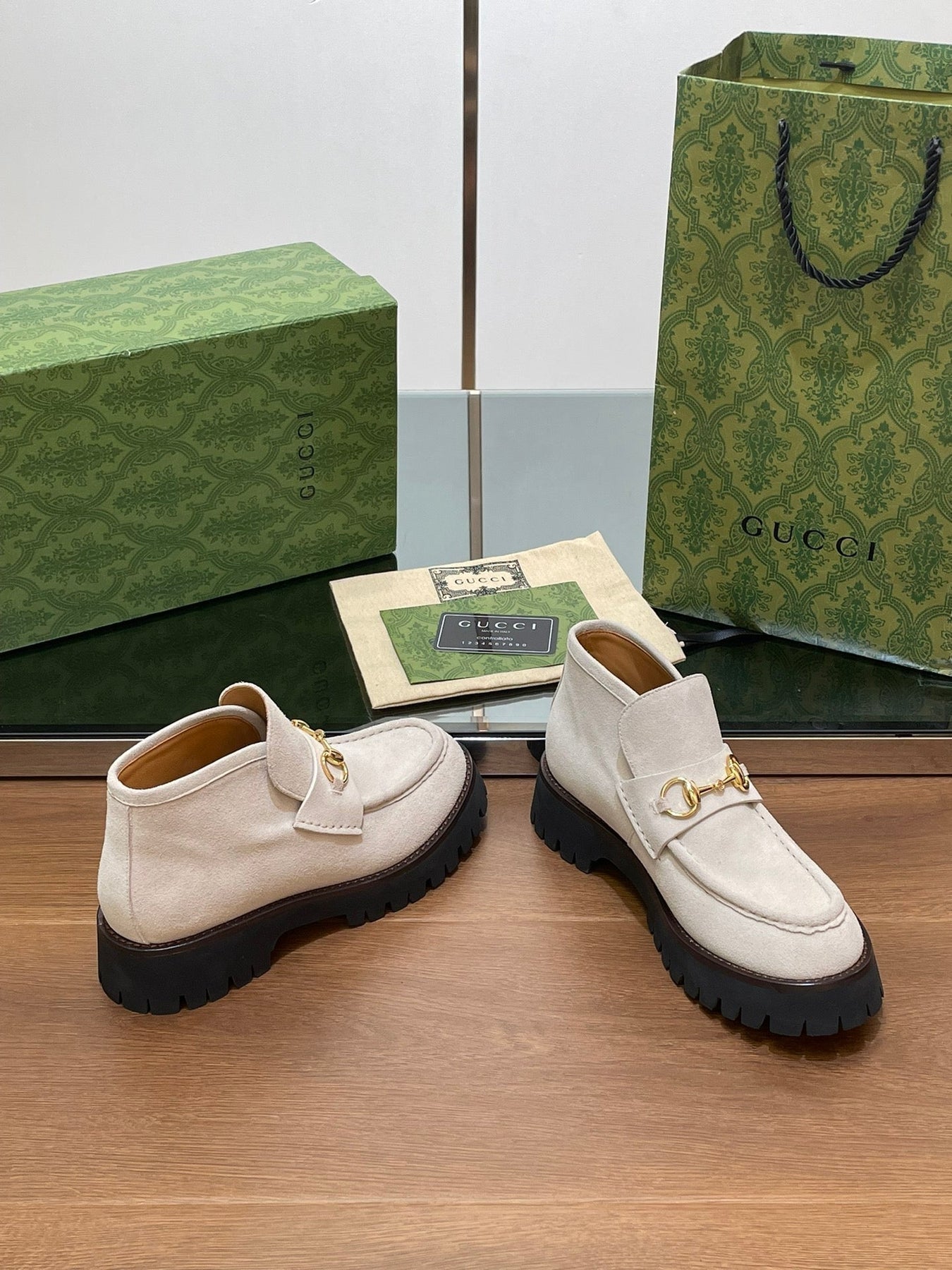 GG WOMEN'S HORSEBIT ANKLE BOOTS 4.5CM IN WHITE SUEDE