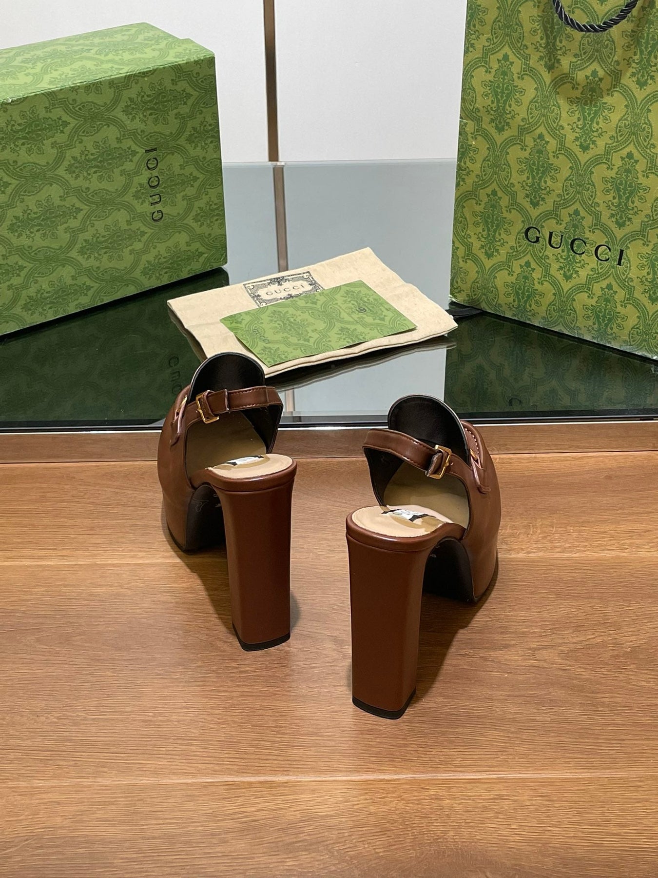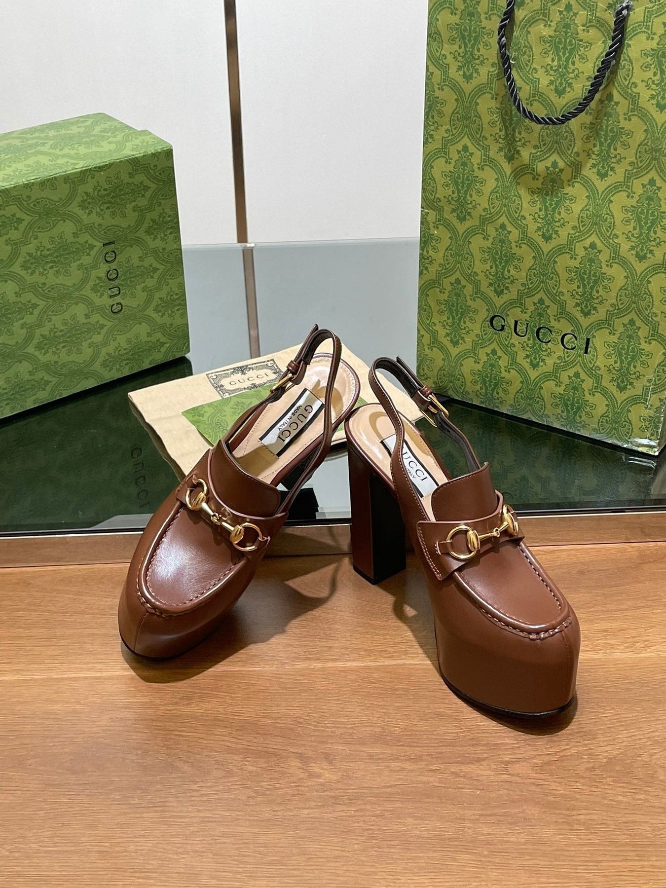 GG WOMEN'S HORSEBIT PLATFORM LOAFER SLINGBACK IN DARK BROWN CALFSKIN