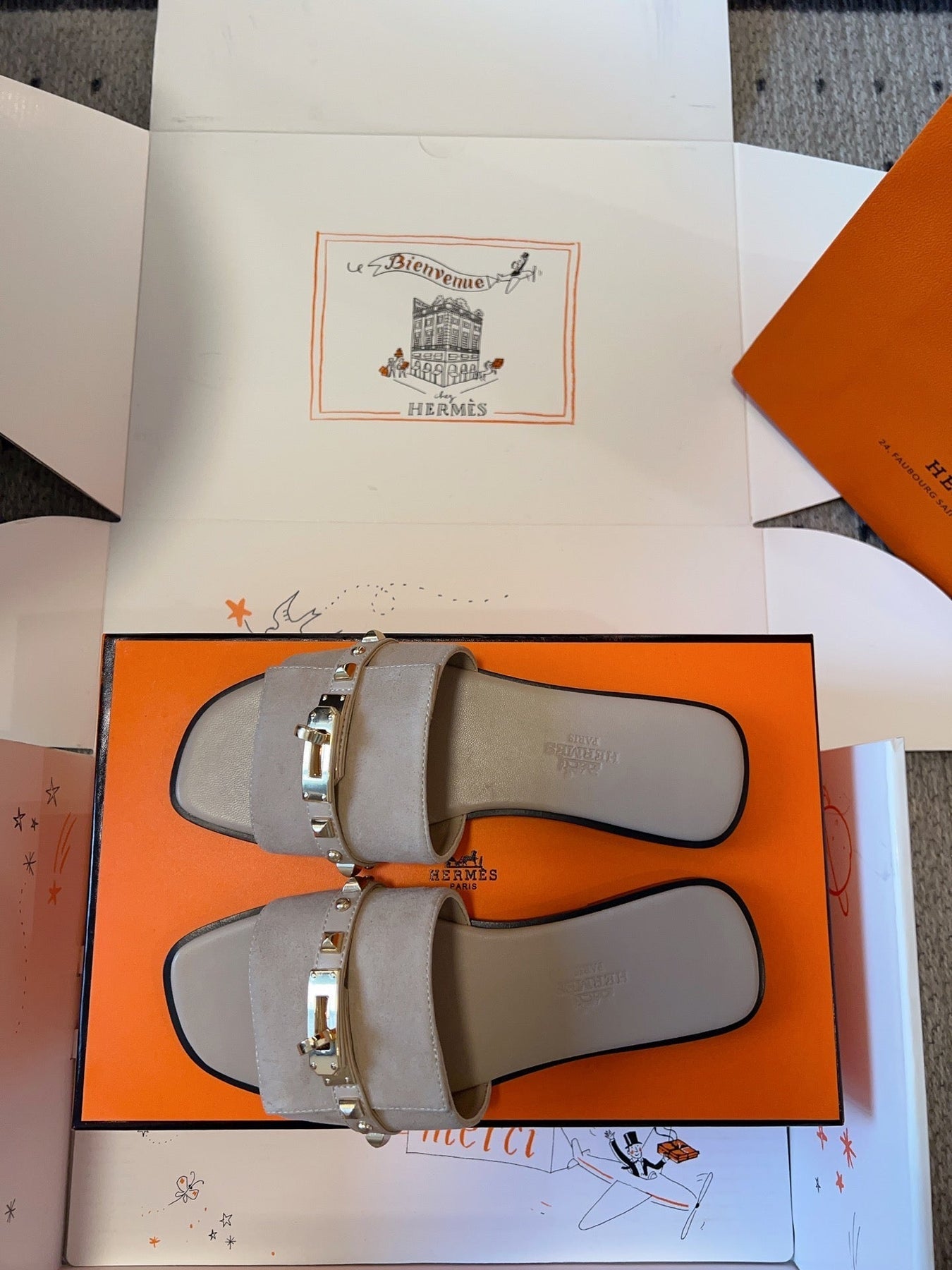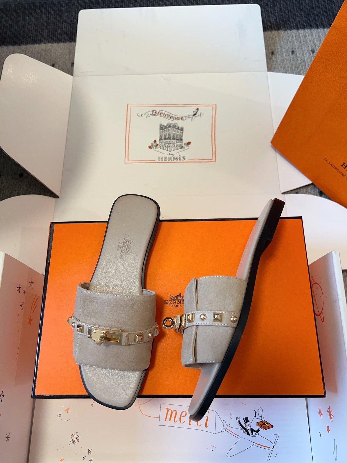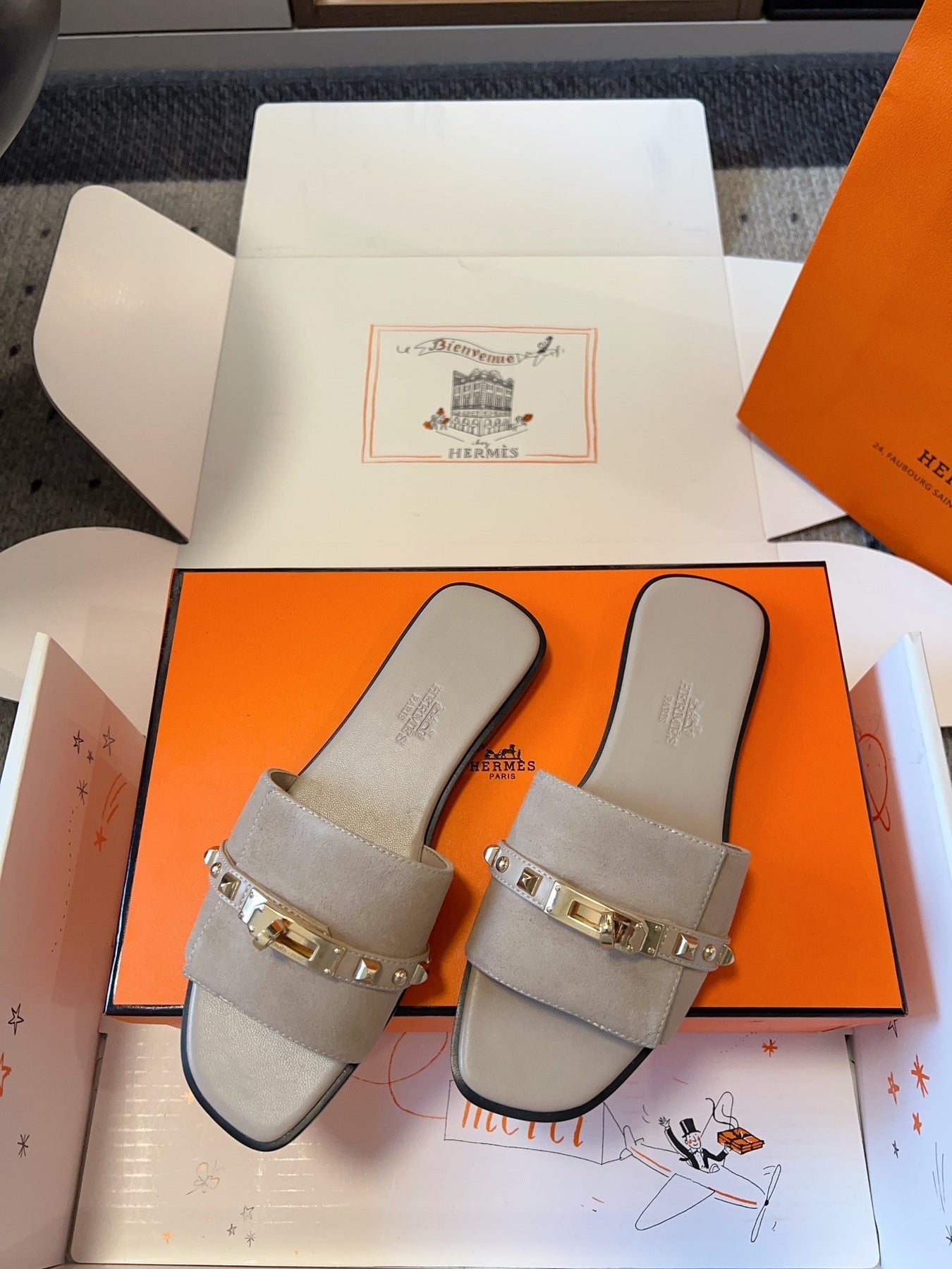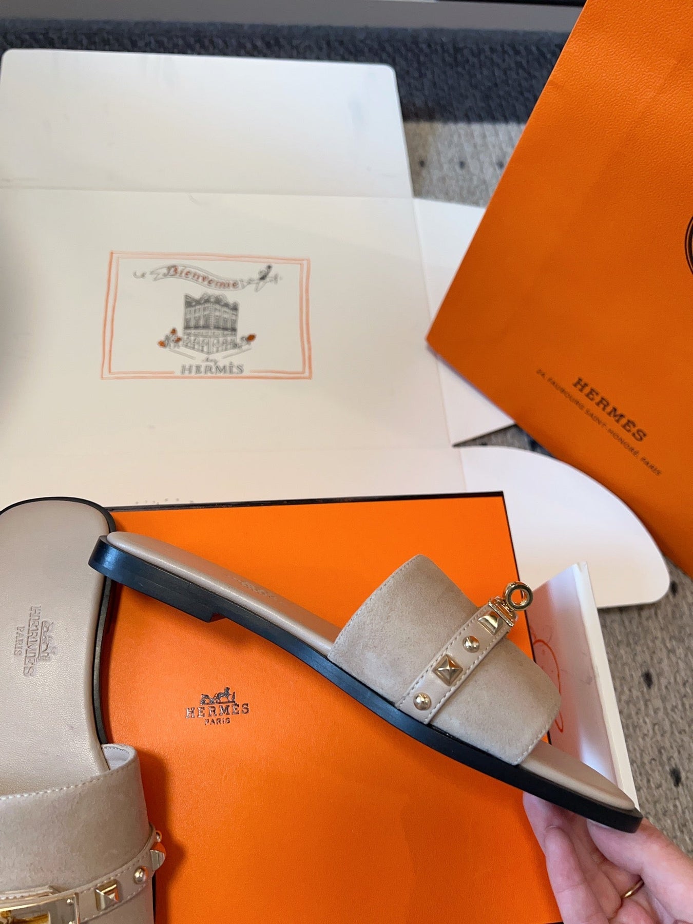 GIULIA FLAT SANDAL IN KHAKI BROWN SUEDE