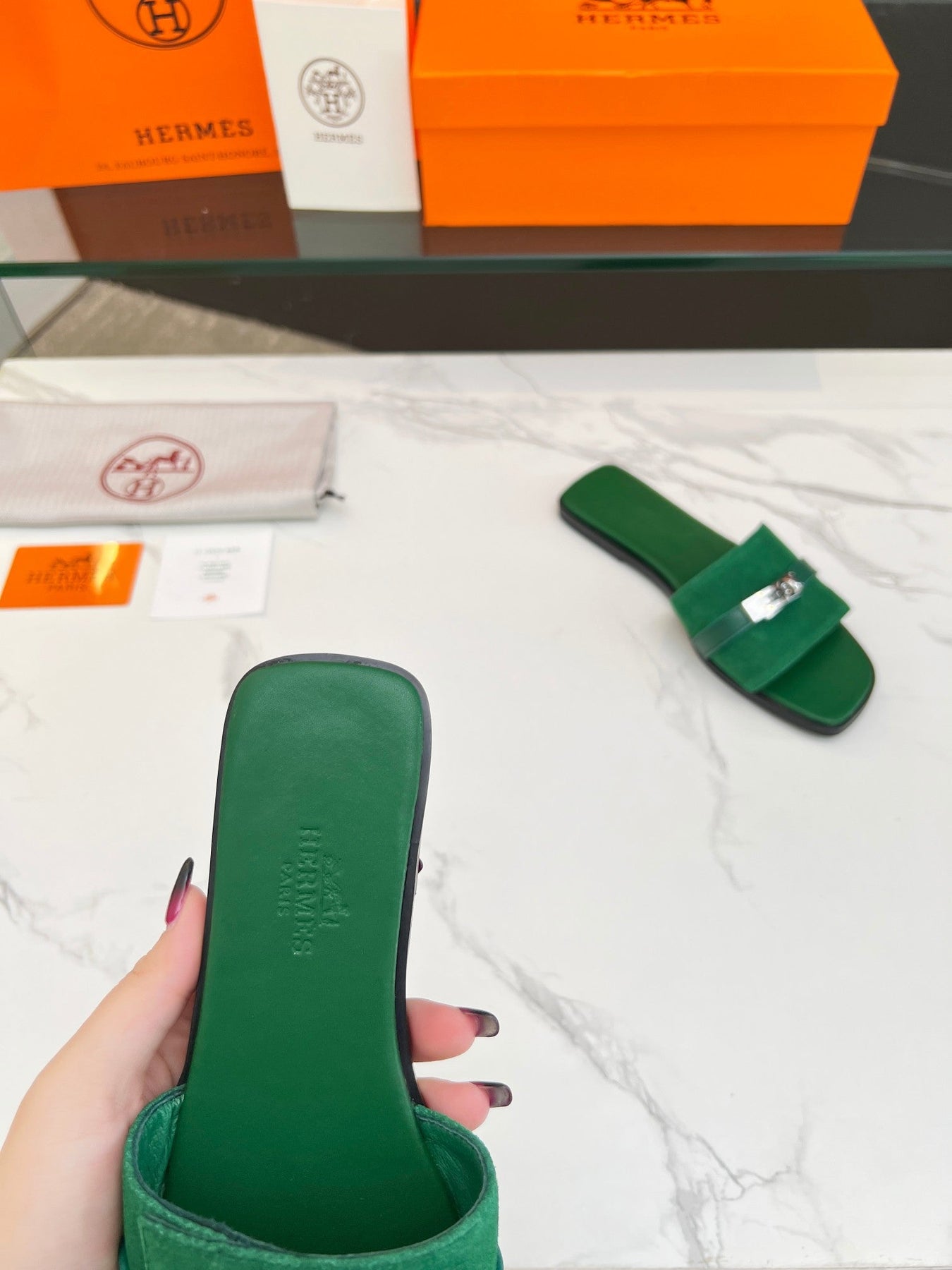 Giulia Sandal Green Suede Green Calfskin