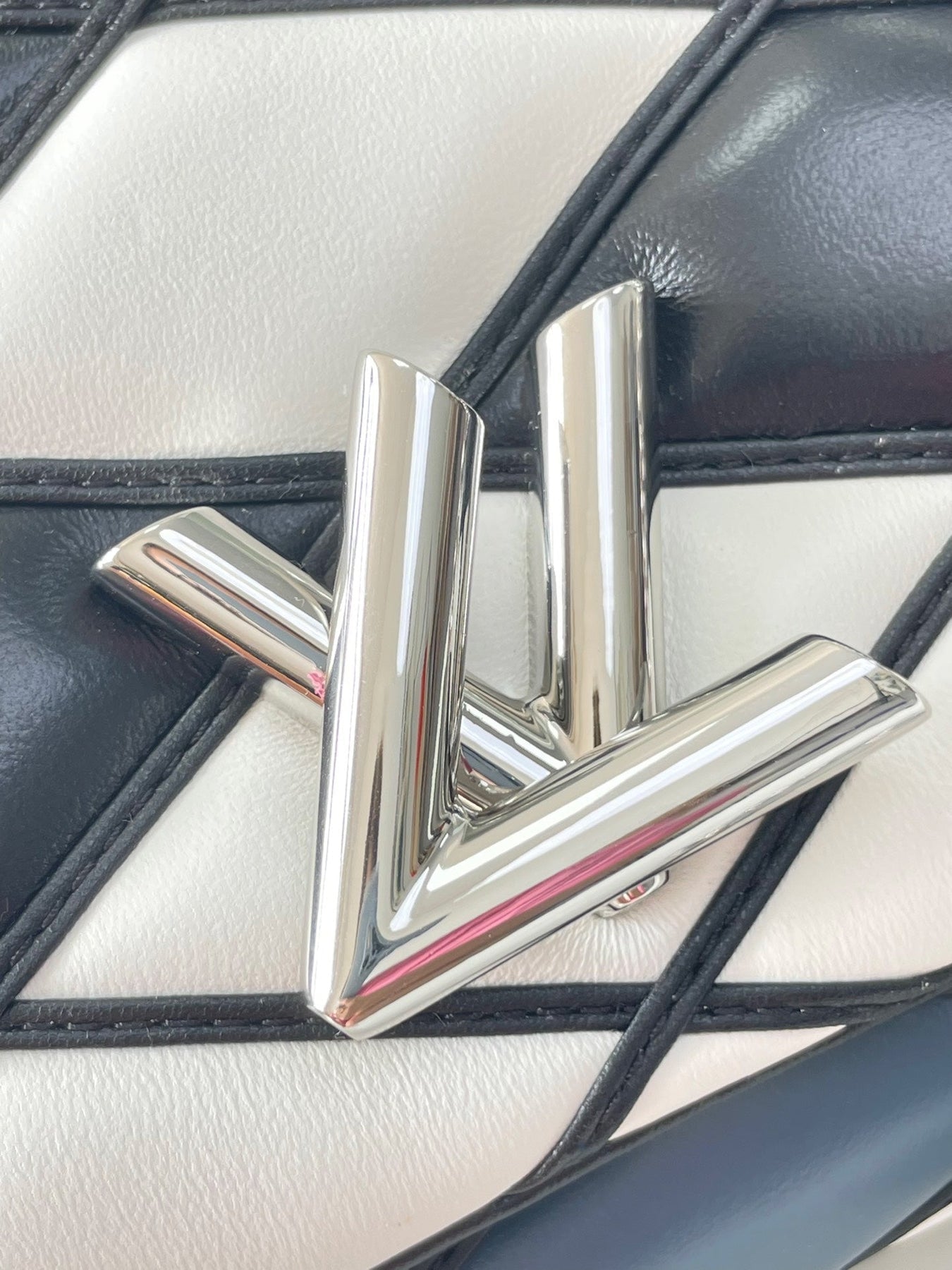 GO-14 MM 23 IN WHITE BLACK MIX STEEL BLUE QUILTED LAMBSKIN SILVER HARDWARE
