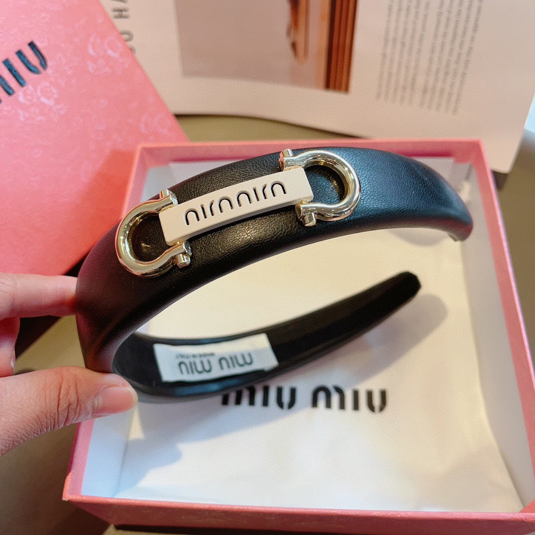 GOLD HORSEBIT HEADBAND IN BLACK CALFSKIN 412413
