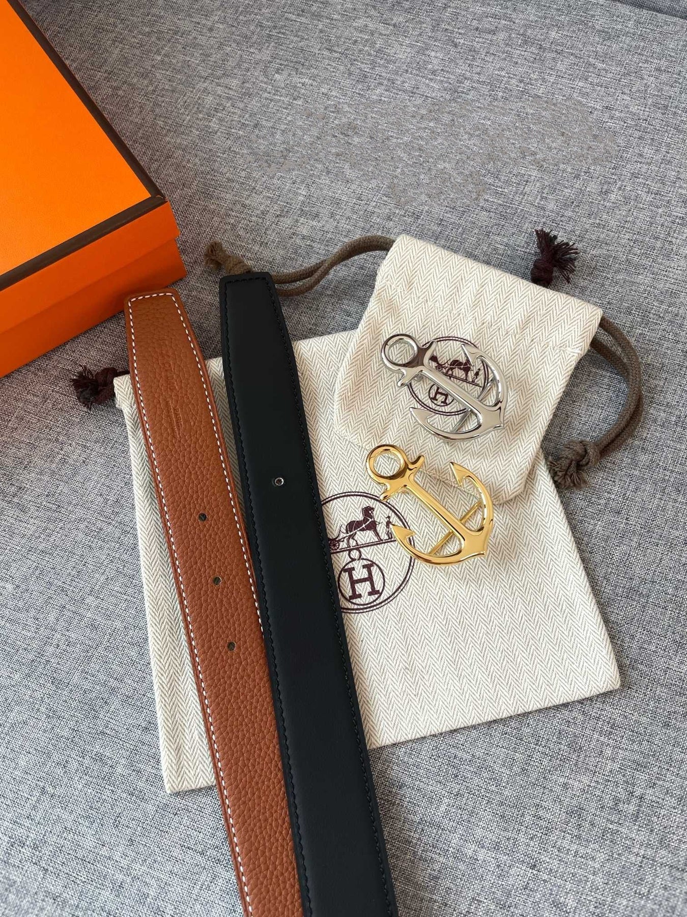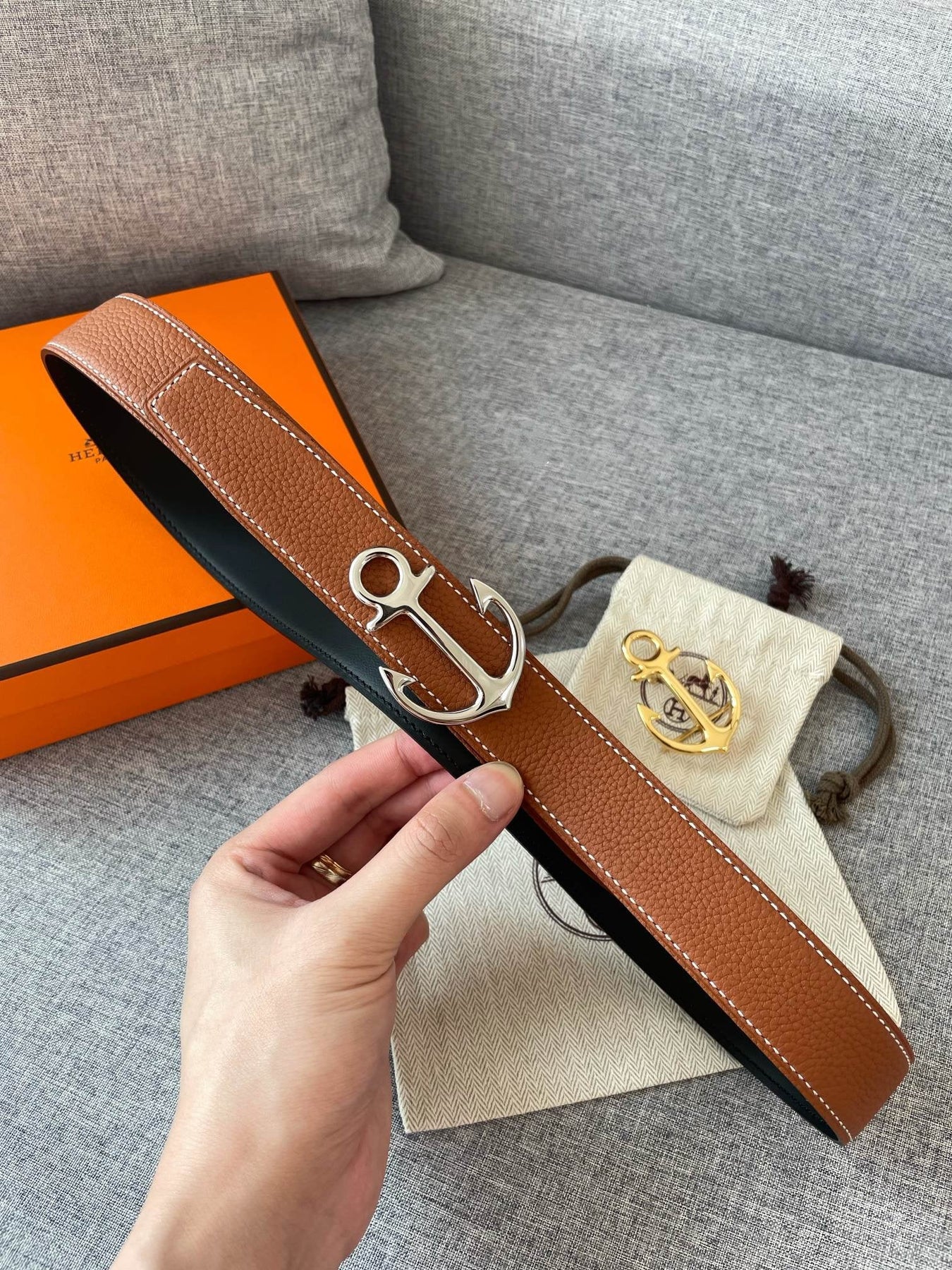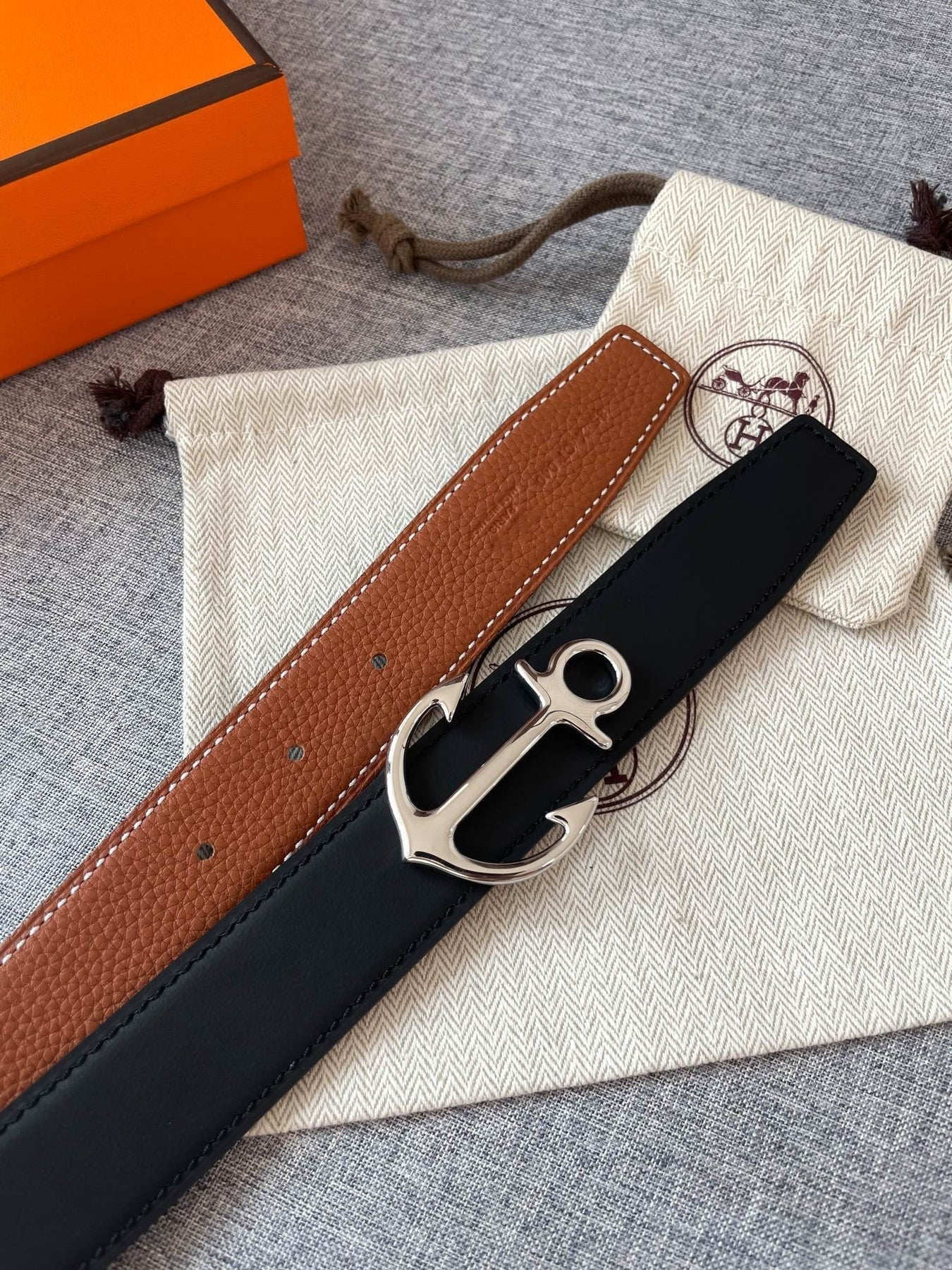 H CARGO BELT 32MM BROWN BLACK LEATHER