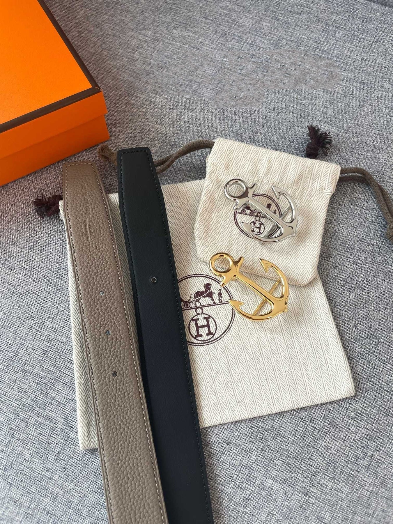 H CARGO BELT 32MM TIN GREY BLACK LEATHER