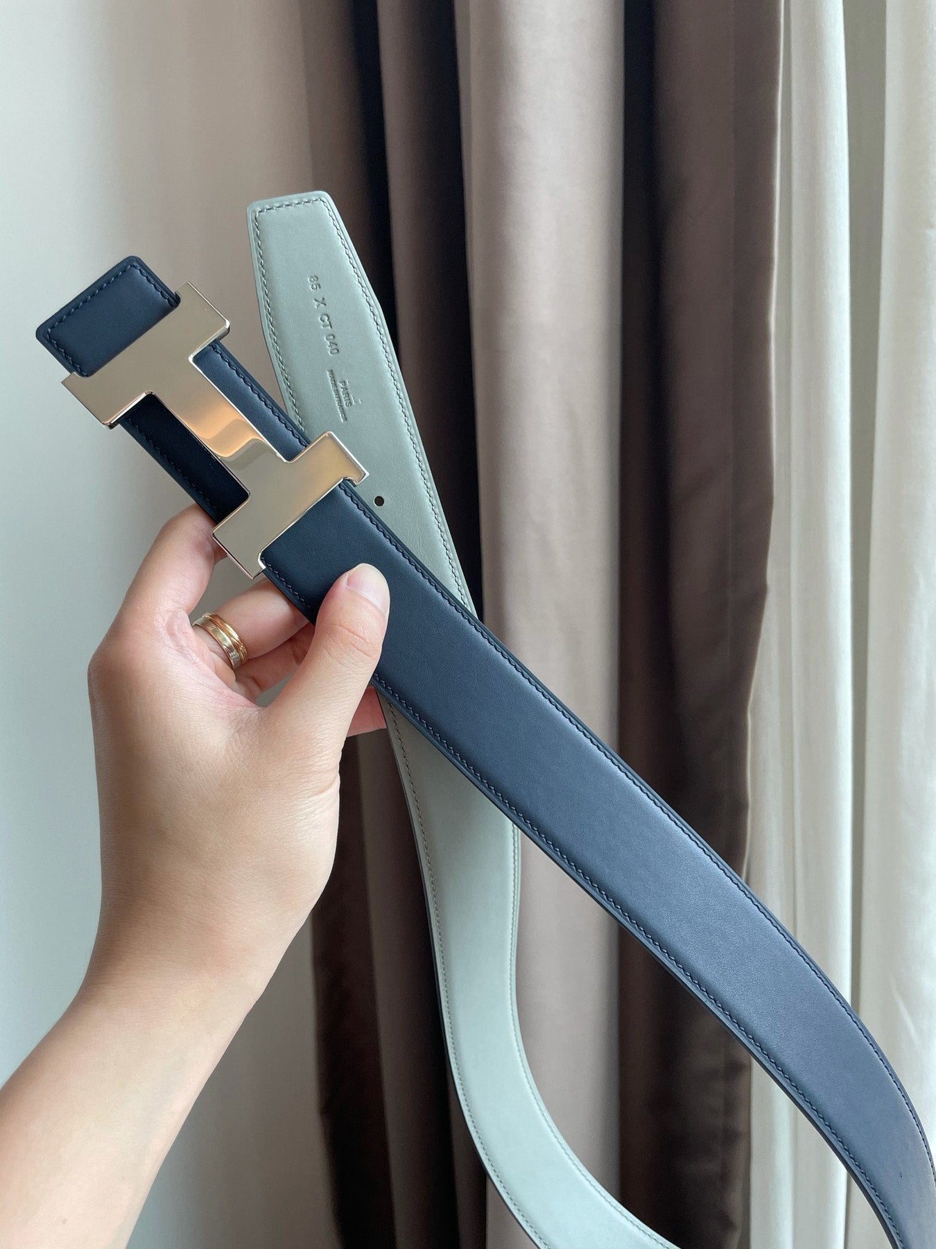 H CONSTANCE BELT 38MM SILVER BUCKLE PRUSSIAN BLUE SKY BLUE LEATHER