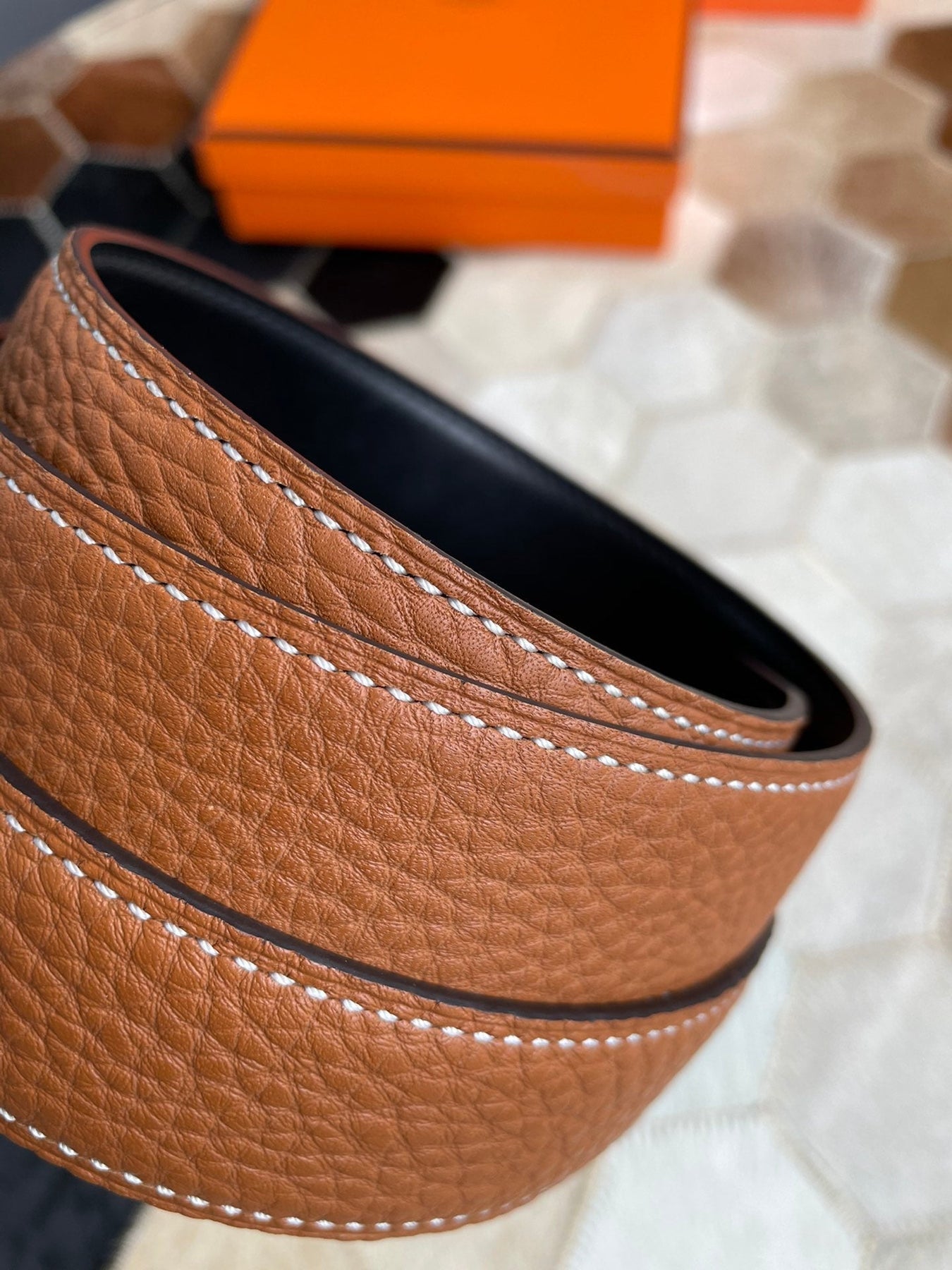 H CONTANCE BELT 32MM SILVER BUCKLE BLACK DARK BROWN LEATHER