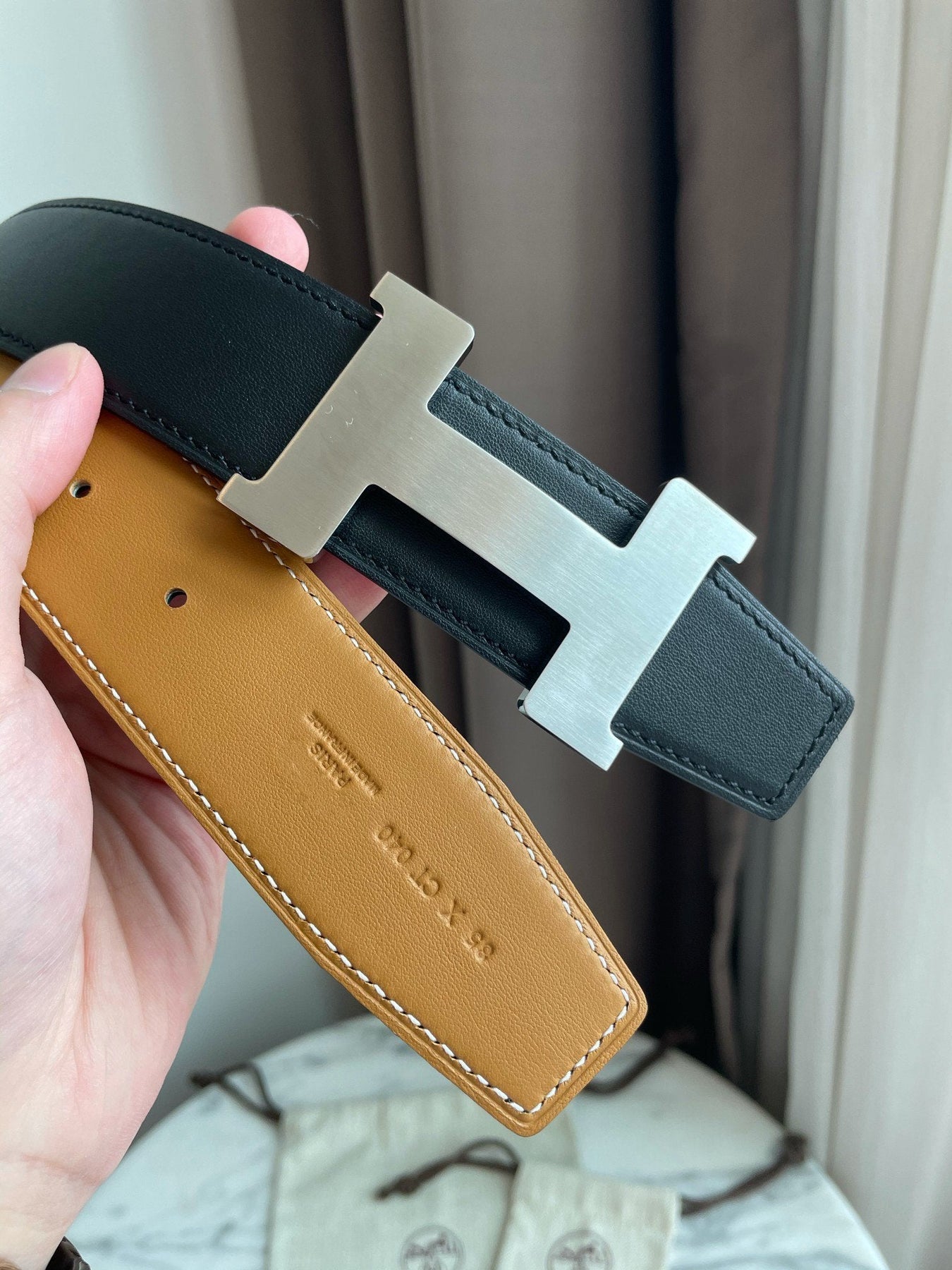 H CONTANCE BELT 38MM BLACK GOLD LEATHER