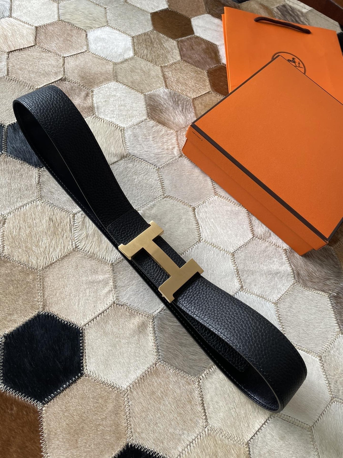 H CONTANCE BELT 38MM GOLD BUCKLE BLACK LEATHER