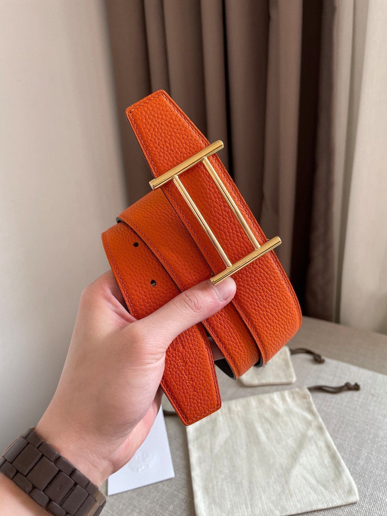 H FACE RIVERSIBLE SKIN TWO SIDES ORANGE BROWN 3.8CM
