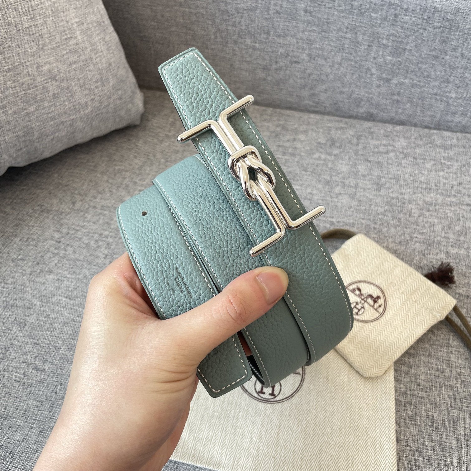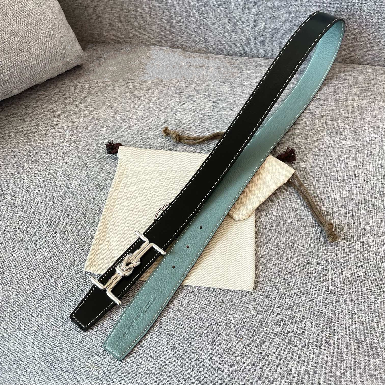 H MARIN REVERSIBLE BELT 32MM SILVER BUCKLE SKY BLUE BLACK LEATHER