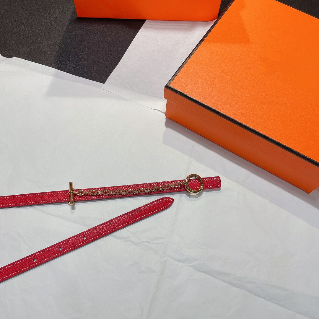 H GOLD BUCKLE WOMEN'S BELT WITH PINK RED LEATHER STRAP 1.3CM