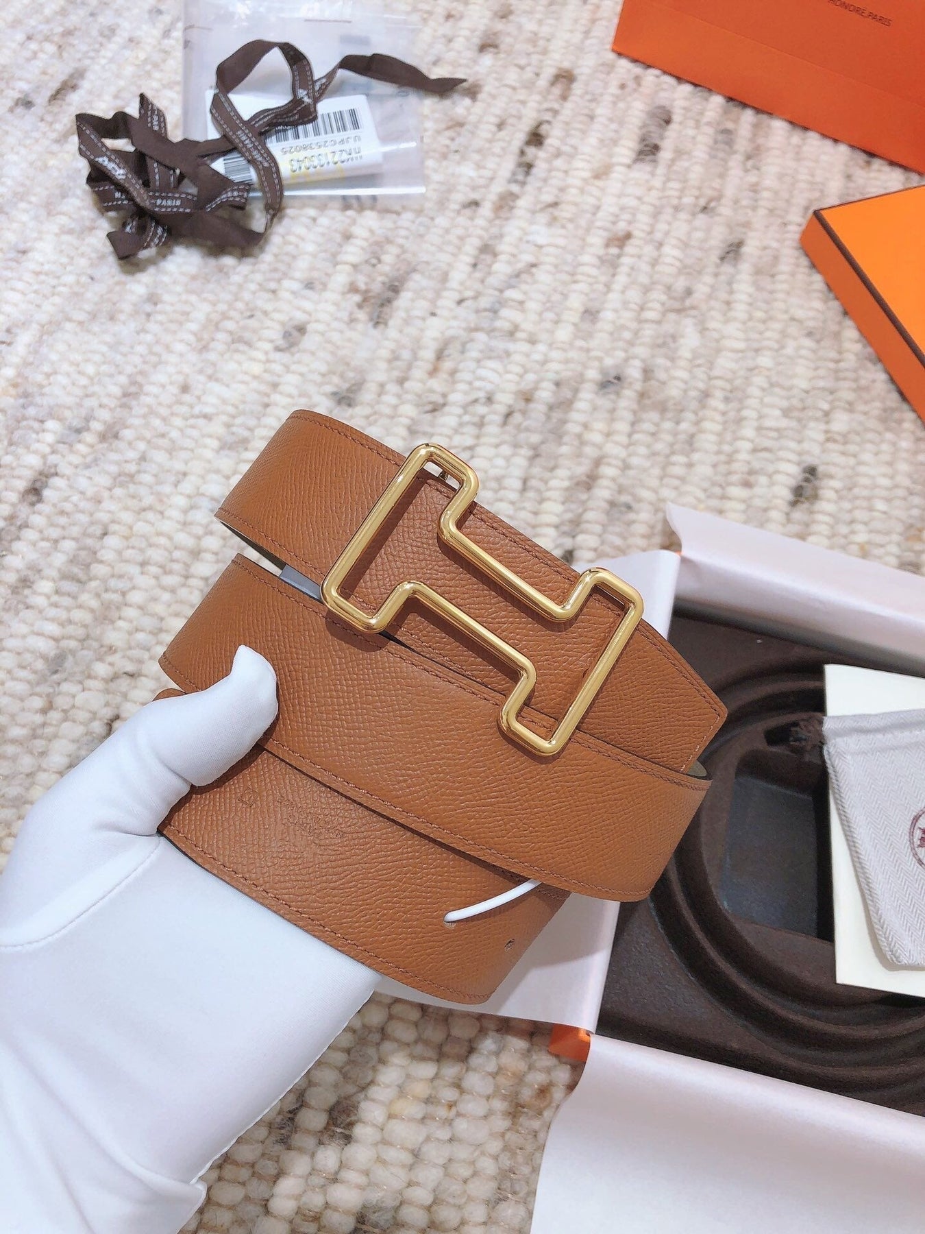 H TONIGHT BELT 38MM BROWN GREEN GREY LEATHER