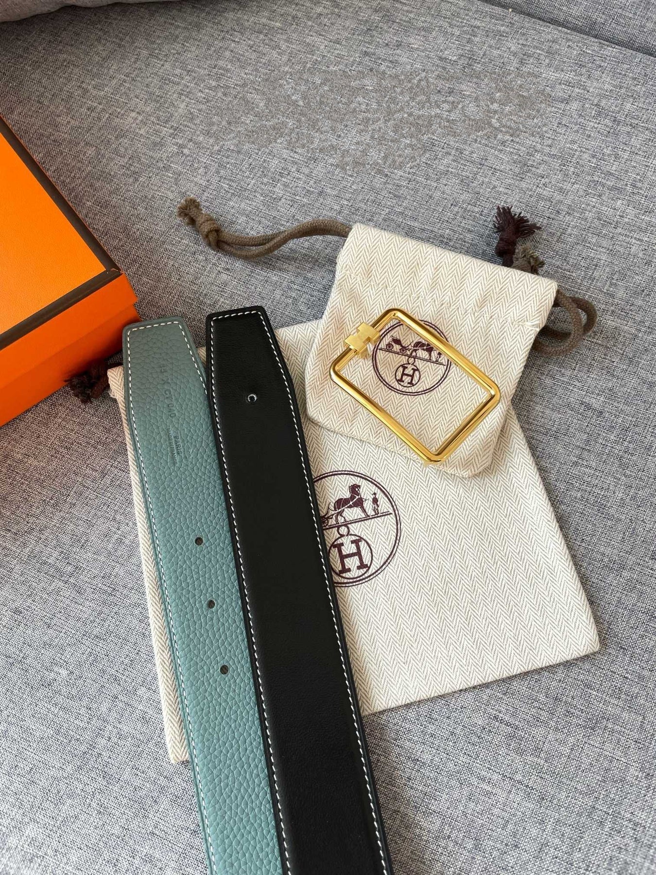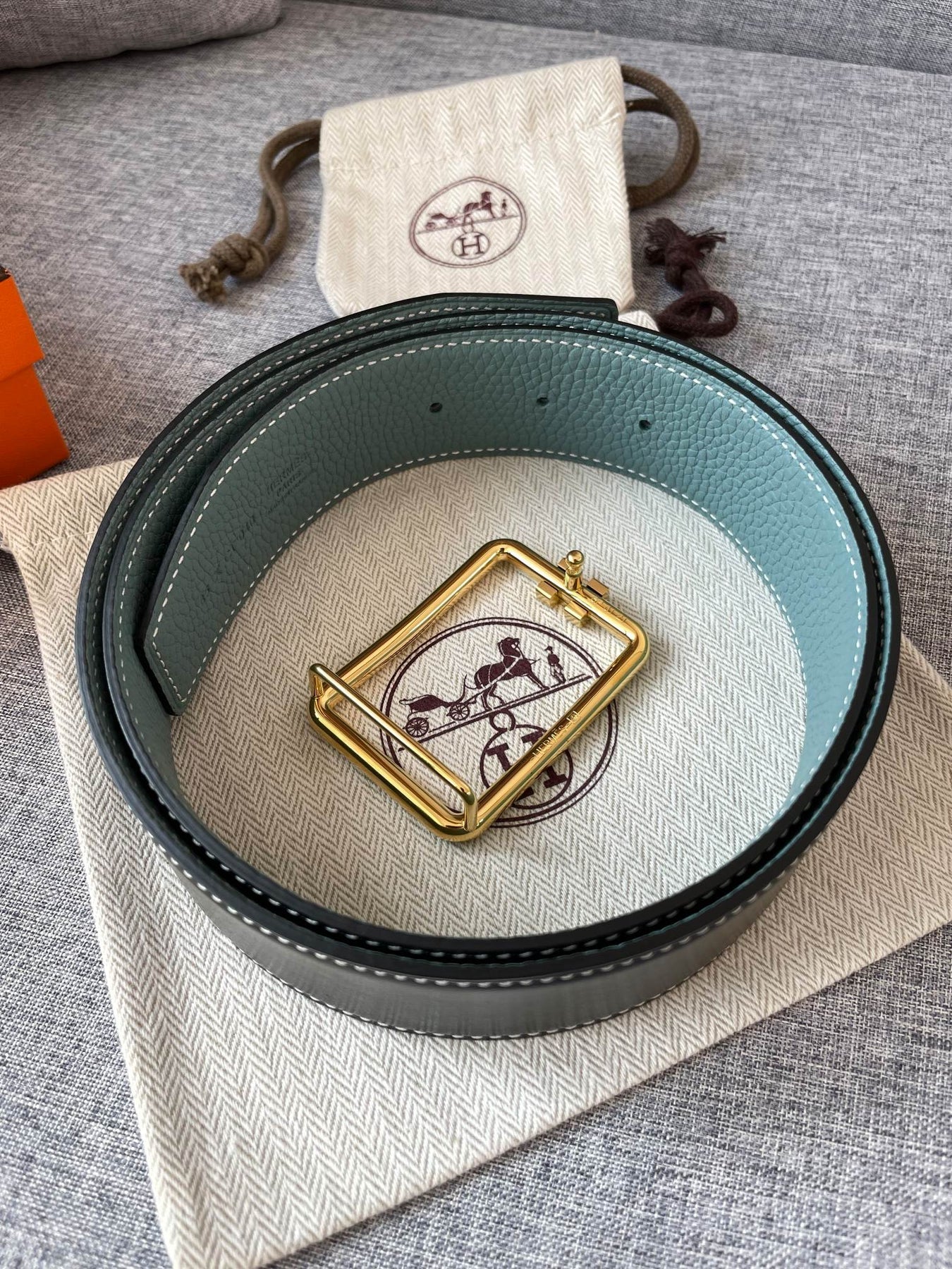 H TUBE BELT 38MM GOLD BUCKLE SKY BLUE BLACK LEATHER